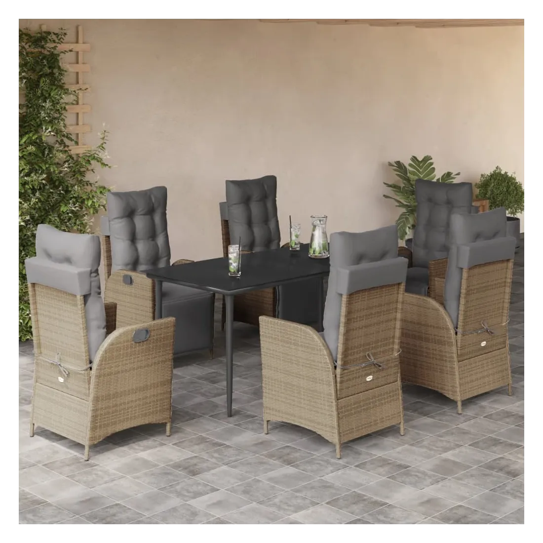 Cet ensemble de salle à manger de jardin est un excellent choix pour les repas en plein air ou pour vous détendre dans le jardin, l'arrière-cour ou le patio. Matériau durable : la résine tressée, également connue sous le nom de poly rotin, est un matériau synthétique solide et nécessitant peu d'entretien qui ressemble au rotin naturel. Il est léger, facile à nettoyer et couramment utilisé pour les meubles d'extérieur en raison de sa durabilité et de ses propriétés de résistance aux intempéries.Dossier et repose-pied réglables : ce siège de jardin est doté d'une poignée. Vous pouvez régler le dossier et le repose-pied dans n'importe quelle position en tirant sur la poignée, et les remettre rapidement dans leur position initiale.Expérience d'assise confortable : ce mobilier d'extérieur, doté de coussins épais, offre une expérience d'assise confortable.Housse amovible et lavable : ces coussins de siège sont dotés de housses amovibles pour un lavage et un entretien faciles. Les coussins de dossier ont un rabat à l'arrière pour une fixation facile aux dossiers.Dessus en verre : le dessus de la table d'extérieur est fabriqué en verre trempé solide et durable, ce qui le rend facile à nettoyer avec un chiffon humide et ajoute une touche d'élégance à votre espace extérieur. Bon à savoir :Pour que vos meubles d'extérieur restent beaux, nous vous recommandons de les protéger avec une housse imperméable.