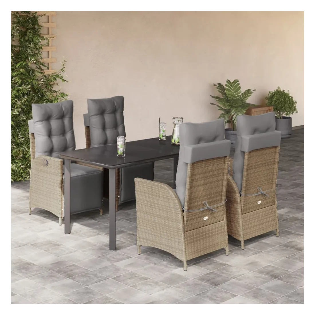 Cet ensemble de salle à manger de jardin est un excellent choix pour les repas en plein air ou pour vous détendre dans le jardin, l'arrière-cour ou le patio. Matériau durable : la résine tressée, également connue sous le nom de poly rotin, est un matériau synthétique solide et nécessitant peu d'entretien qui ressemble au rotin naturel. Il est léger, facile à nettoyer et couramment utilisé pour les meubles d'extérieur en raison de sa durabilité et de ses propriétés de résistance aux intempéries.Dossier et repose-pied réglables : ce siège de jardin est doté d'une poignée. Vous pouvez régler le dossier et le repose-pied dans n'importe quelle position en tirant sur la poignée, et les remettre rapidement dans leur position initiale.Expérience d'assise confortable : ce mobilier d'extérieur, doté de coussins épais, offre une expérience d'assise confortable.Housse amovible et lavable : ces coussins de siège sont dotés de housses amovibles pour un lavage et un entretien faciles. Les coussins de dossier ont un rabat à l'arrière pour une fixation facile aux dossiers.Dessus en verre : le dessus de la table d'extérieur est fabriqué en verre trempé solide et durable, ce qui le rend facile à nettoyer avec un chiffon humide et ajoute une touche d'élégance à votre espace extérieur. Bon à savoir :Pour que vos meubles d'extérieur restent beaux, nous vous recommandons de les protéger avec une housse imperméable.