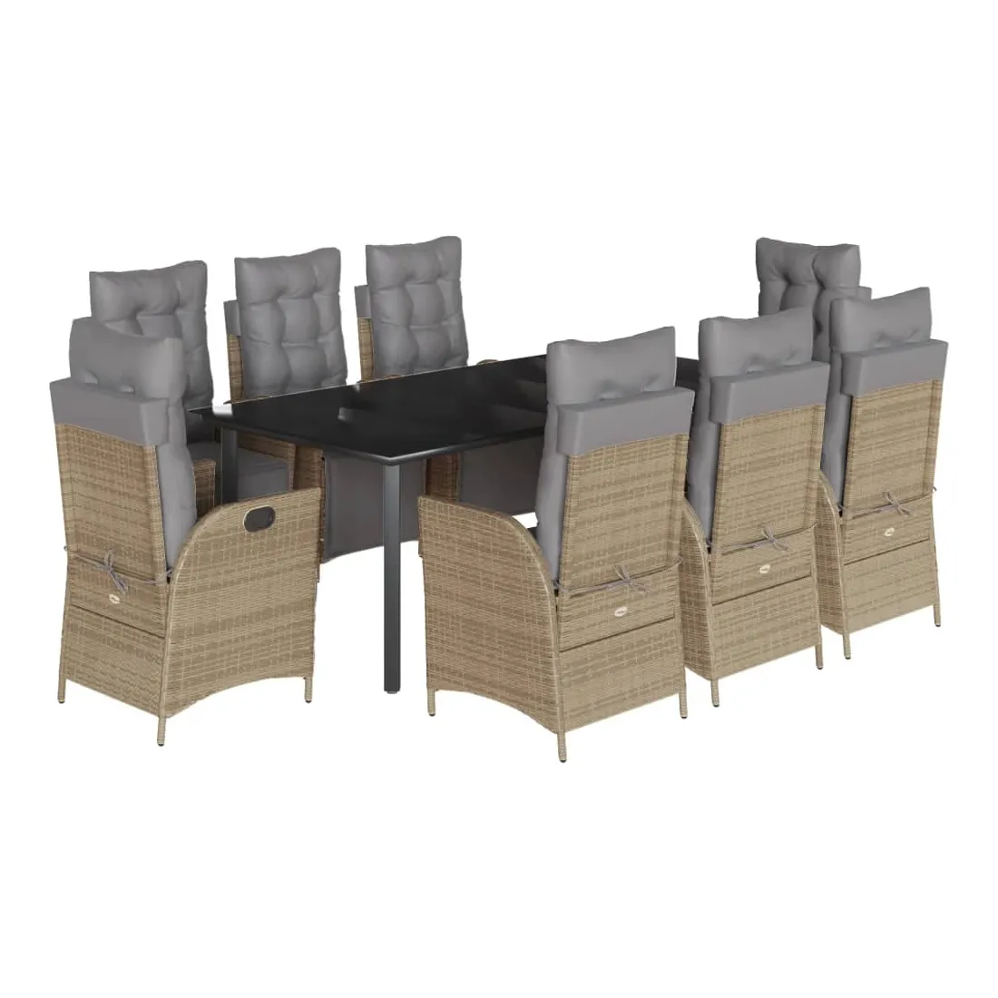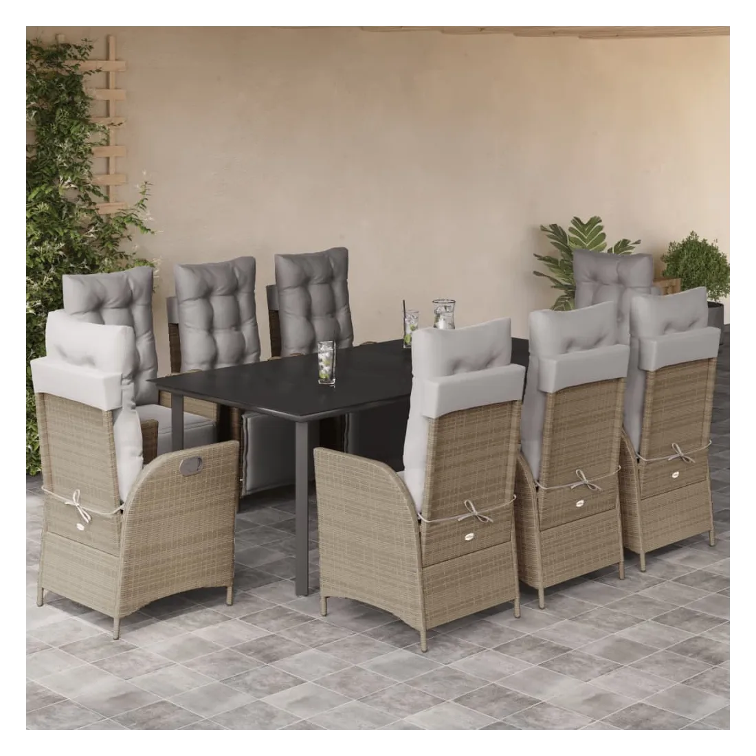 Cet ensemble de salle à manger de jardin est un excellent choix pour les repas en plein air ou pour vous détendre dans le jardin, l'arrière-cour ou le patio. Matériau durable : la résine tressée, également connue sous le nom de poly rotin, est un matériau synthétique solide et nécessitant peu d'entretien qui ressemble au rotin naturel. Il est léger, facile à nettoyer et couramment utilisé pour les meubles d'extérieur en raison de sa durabilité et de ses propriétés de résistance aux intempéries.Dossier et repose-pied réglables : ce siège de jardin est doté d'une poignée. Vous pouvez régler le dossier et le repose-pied dans n'importe quelle position en tirant sur la poignée, et les remettre rapidement dans leur position initiale.Expérience d'assise confortable : ce mobilier d'extérieur, doté de coussins épais, offre une expérience d'assise confortable.Housse amovible et lavable : ces coussins de siège sont dotés de housses amovibles pour un lavage et un entretien faciles. Les coussins de dossier ont un rabat à l'arrière pour une fixation facile aux dossiers.Dessus en verre : le dessus de la table d'extérieur est fabriqué en verre trempé solide et durable, ce qui le rend facile à nettoyer avec un chiffon humide et ajoute une touche d'élégance à votre espace extérieur. Bon à savoir :Pour que vos meubles d'extérieur restent beaux, nous vous recommandons de les protéger avec une housse imperméable.