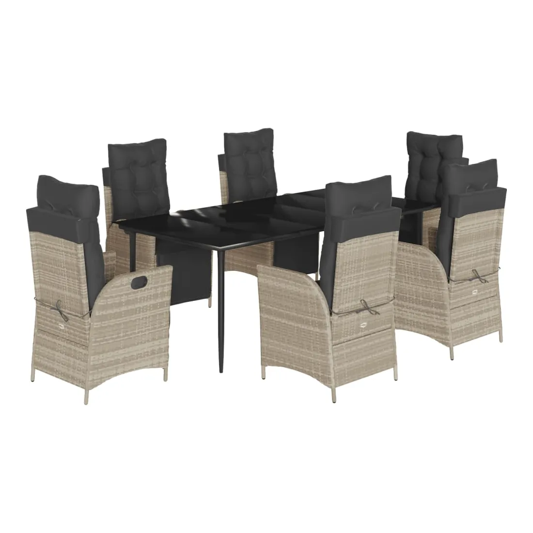 Cet ensemble de salle à manger de jardin est un excellent choix pour les repas en plein air ou pour vous détendre dans le jardin, l'arrière-cour ou le patio. Matériau durable : la résine tressée, également connue sous le nom de poly rotin, est un matériau synthétique solide et nécessitant peu d'entretien qui ressemble au rotin naturel. Il est léger, facile à nettoyer et couramment utilisé pour les meubles d'extérieur en raison de sa durabilité et de ses propriétés de résistance aux intempéries.Dossier et repose-pied réglables : ce siège de jardin est doté d'une poignée. Vous pouvez régler le dossier et le repose-pied dans n'importe quelle position en tirant sur la poignée, et les remettre rapidement dans leur position initiale.Expérience d'assise confortable : ce mobilier d'extérieur, doté de coussins épais, offre une expérience d'assise confortable.Housse amovible et lavable : ces coussins de siège sont dotés de housses amovibles pour un lavage et un entretien faciles. Les coussins de dossier ont un rabat à l'arrière pour une fixation facile aux dossiers.Dessus en verre : le dessus de la table d'extérieur est fabriqué en verre trempé solide et durable, ce qui le rend facile à nettoyer avec un chiffon humide et ajoute une touche d'élégance à votre espace extérieur. Bon à savoir :Pour que vos meubles d'extérieur restent beaux, nous vous recommandons de les protéger avec une housse imperméable.