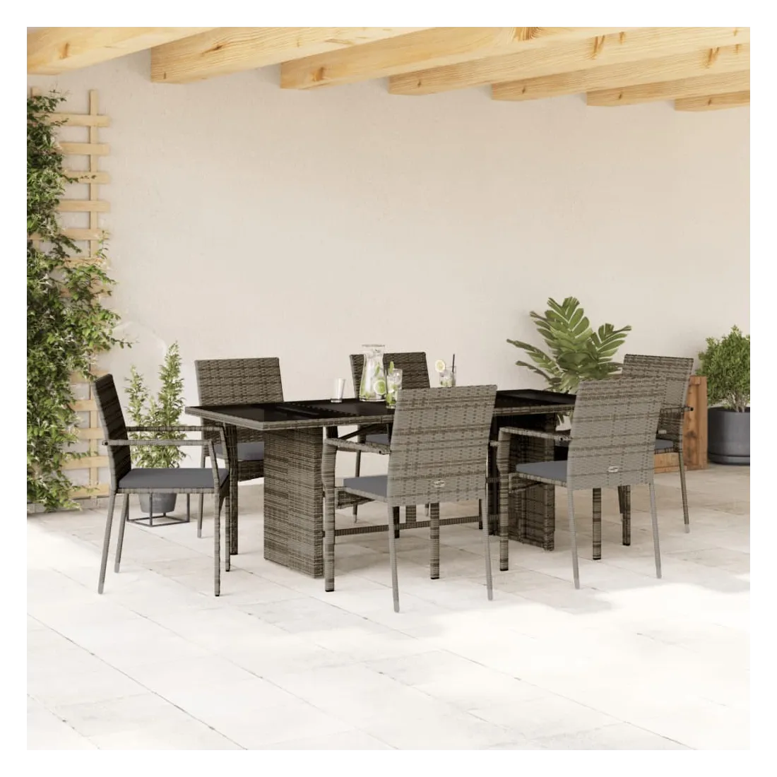 Cet ensemble de salle à manger de jardin est un excellent choix pour les repas en plein air ou pour vous détendre dans le jardin, l'arrière-cour ou le patio. Matériau durable : la résine tressée, également connue sous le nom de poly rotin, est un matériau synthétique solide et nécessitant peu d'entretien qui ressemble au rotin naturel. Il est léger, facile à nettoyer et couramment utilisé pour les meubles d'extérieur en raison de sa durabilité et de ses propriétés de résistance aux intempéries. Dessus en verre : le dessus de la table d'extérieur est fabriqué en verre trempé solide et durable, ce qui le rend facile à nettoyer avec un chiffon humide et ajoute une touche d'élégance à votre espace extérieur. Expérience d'assise confortable : ce mobilier d'extérieur, doté de coussins épais, offre une expérience d'assise confortable. Housse amovible et lavable : ces coussins de siège sont dotés de housses amovibles pour un lavage et un entretien faciles. Cadre robuste et stable : le cadre en acier enduit de poudre assure la solidité et la stabilité du meuble de jardin pour une utilisation quotidienne à l'extérieur. Bon à savoir :Pour que vos meubles d'extérieur restent beaux, nous vous recommandons de les protéger avec une housse imperméable.