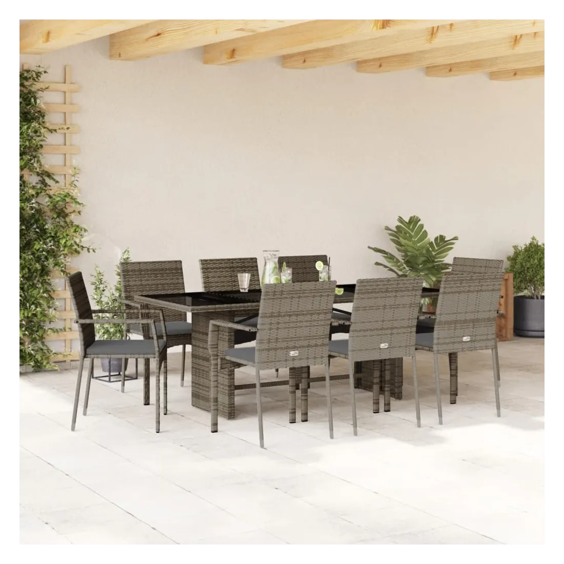 Cet ensemble de salle à manger de jardin est un excellent choix pour les repas en plein air ou pour vous détendre dans le jardin, l'arrière-cour ou le patio. Matériau durable : la résine tressée, également connue sous le nom de poly rotin, est un matériau synthétique solide et nécessitant peu d'entretien qui ressemble au rotin naturel. Il est léger, facile à nettoyer et couramment utilisé pour les meubles d'extérieur en raison de sa durabilité et de ses propriétés de résistance aux intempéries. Dessus en verre : le dessus de la table d'extérieur est fabriqué en verre trempé solide et durable, ce qui le rend facile à nettoyer avec un chiffon humide et ajoute une touche d'élégance à votre espace extérieur. Expérience d'assise confortable : ce mobilier d'extérieur, doté de coussins épais, offre une expérience d'assise confortable. Cadre robuste et stable : le cadre en acier enduit de poudre assure la solidité et la stabilité du meuble de jardin pour une utilisation quotidienne à l'extérieur. Bon à savoir :Pour que vos meubles d'extérieur restent beaux, nous vous recommandons de les protéger avec une housse imperméable.