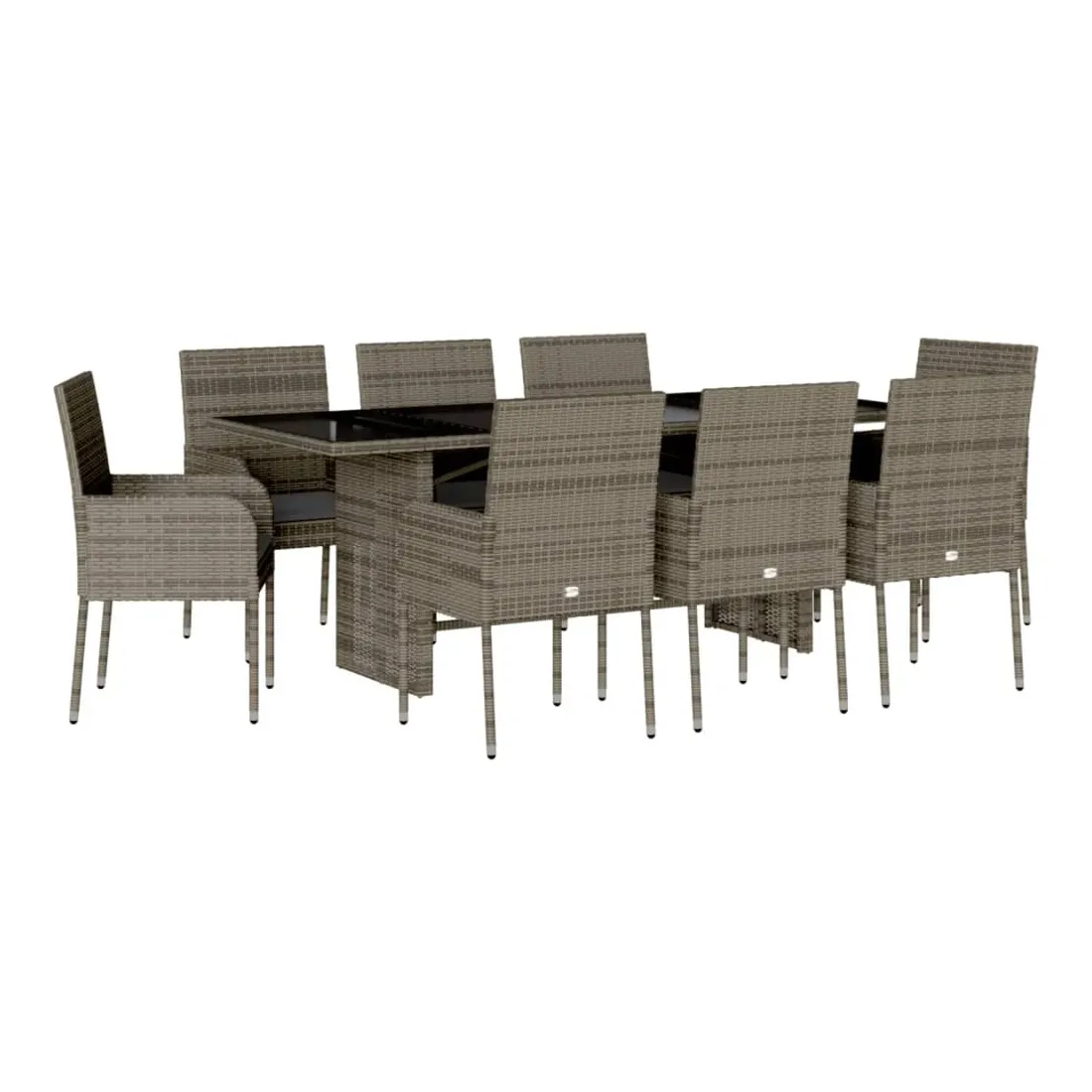 Cet ensemble de salle à manger de jardin est un excellent choix pour les repas en plein air ou pour vous détendre dans le jardin, l'arrière-cour ou le patio. Matériau durable : la résine tressée, également connue sous le nom de poly rotin, est un matériau synthétique solide et nécessitant peu d'entretien qui ressemble au rotin naturel. Il est léger, facile à nettoyer et couramment utilisé pour les meubles d'extérieur en raison de sa durabilité et de ses propriétés de résistance aux intempéries. Dessus en verre : le dessus de la table d'extérieur est fabriqué en verre trempé solide et durable, ce qui le rend facile à nettoyer avec un chiffon humide et ajoute une touche d'élégance à votre espace extérieur. Expérience d'assise confortable : ce mobilier d'extérieur, doté de coussins épais, offre une expérience d'assise confortable. Cadre robuste et stable : le cadre en acier enduit de poudre assure la solidité et la stabilité du meuble de jardin pour une utilisation quotidienne à l'extérieur. Bon à savoir :Pour que vos meubles d'extérieur restent beaux, nous vous recommandons de les protéger avec une housse imperméable.