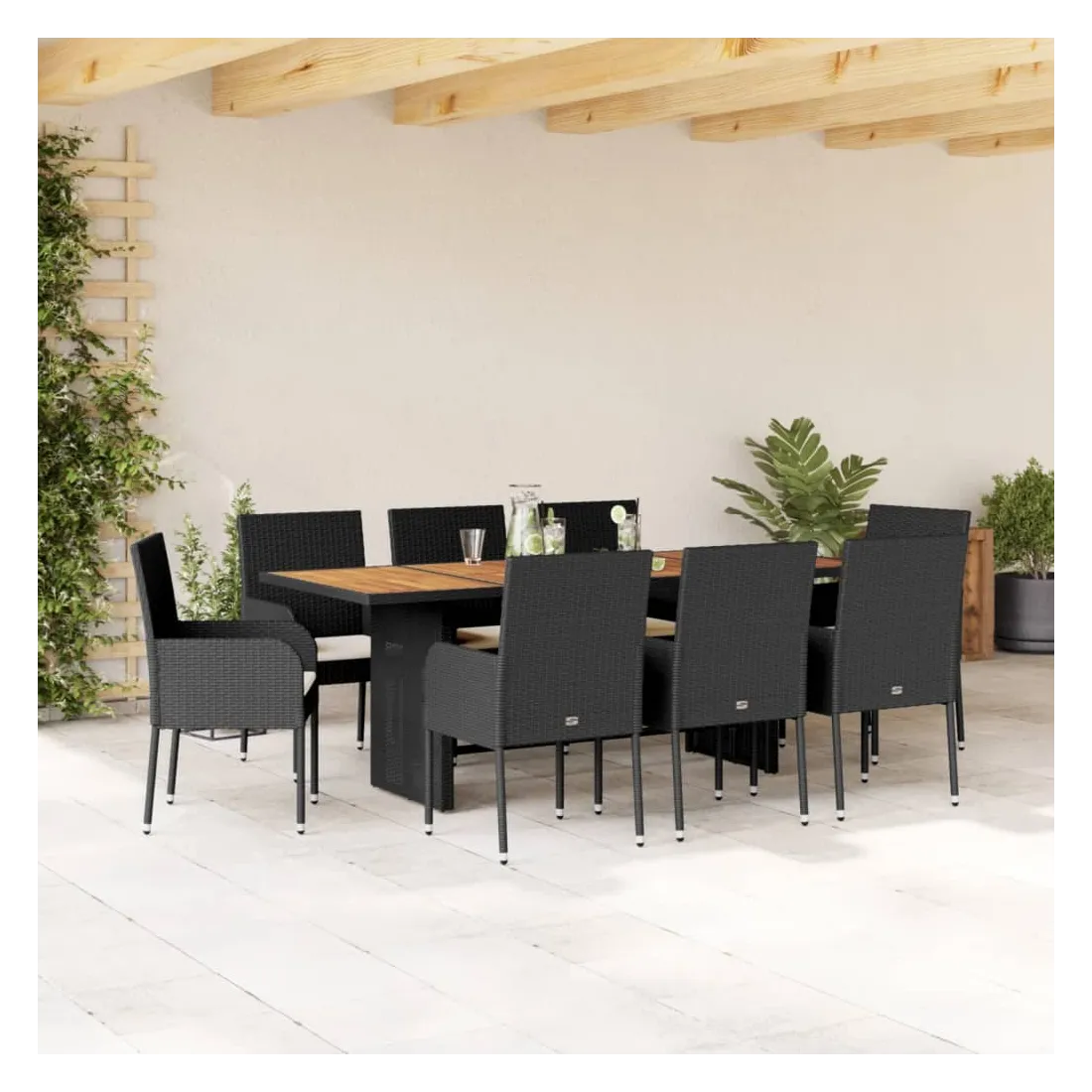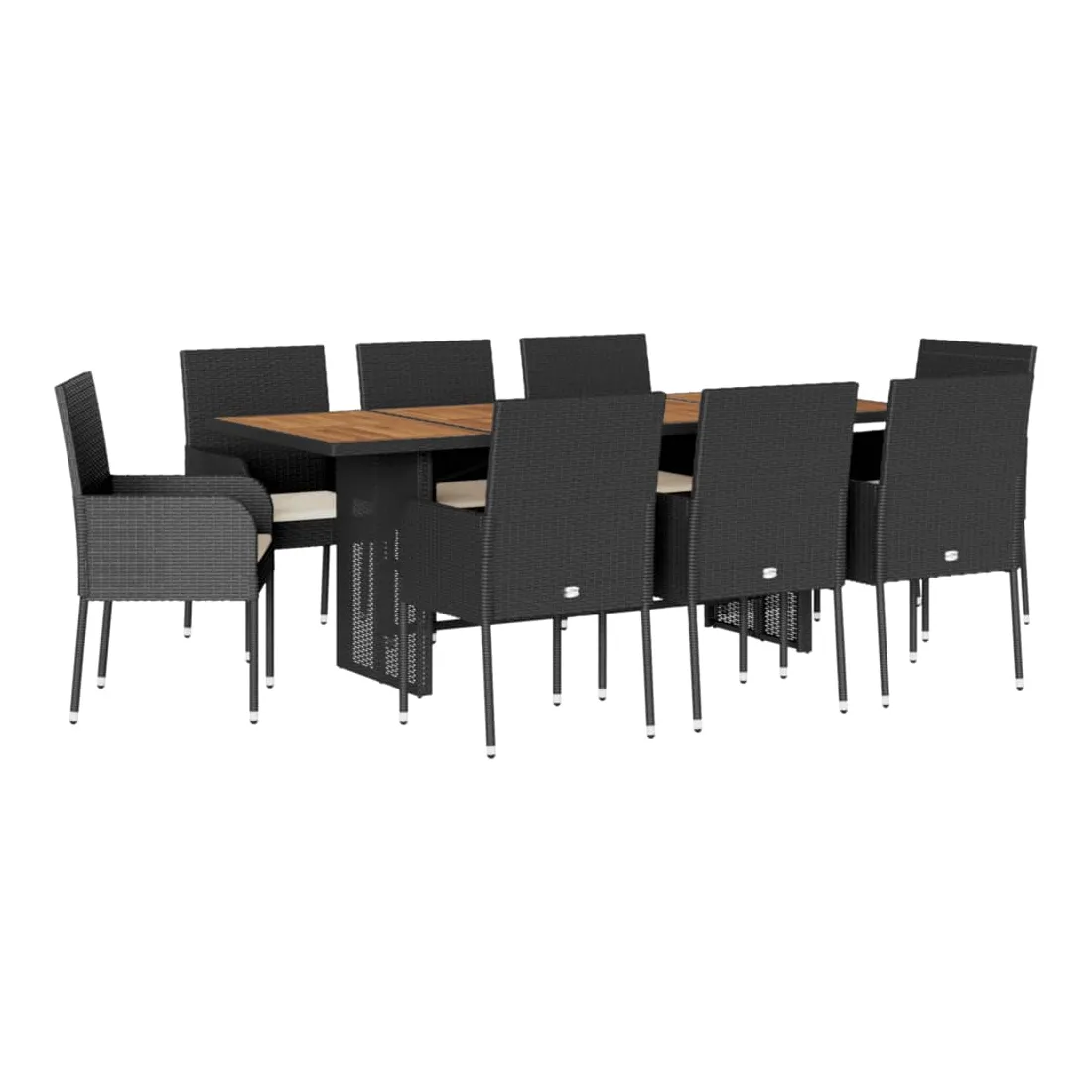Cet ensemble de salle à manger de jardin est un excellent choix pour les repas en plein air ou pour vous détendre dans le jardin, l'arrière-cour ou le patio. Matériau durable : la résine tressée, également connue sous le nom de poly rotin, est un matériau synthétique solide et nécessitant peu d'entretien qui ressemble au rotin naturel. Il est léger, facile à nettoyer et couramment utilisé pour les meubles d'extérieur en raison de sa durabilité et de ses propriétés de résistance aux intempéries. Dessus stable et facile à nettoyer : cette table de jardin a un dessus en bois d'acacia robuste, durable et facile à nettoyer avec un chiffon humide. Expérience d'assise confortable : ce mobilier d'extérieur, doté de coussins épais, offre une expérience d'assise confortable. Cadre robuste et stable : le cadre en acier enduit de poudre assure la solidité et la stabilité du meuble de jardin pour une utilisation quotidienne à l'extérieur. Bon à savoir :Pour que vos meubles d'extérieur restent beaux, nous vous recommandons de les protéger avec une housse imperméable.