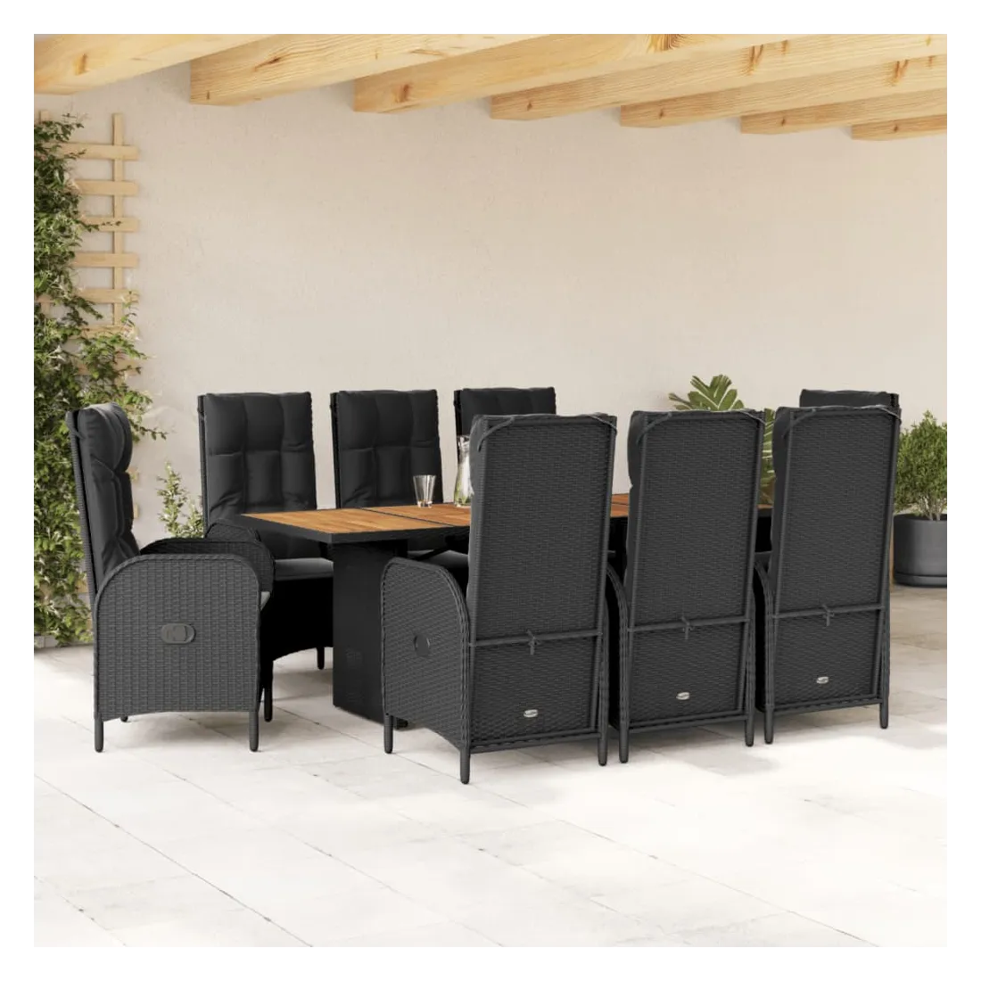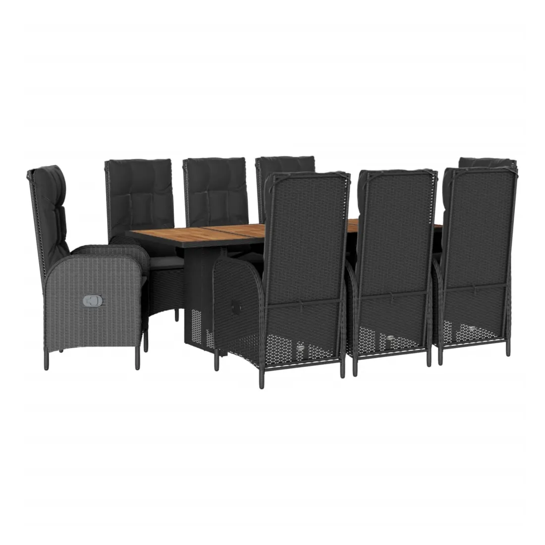 Cet ensemble de salle à manger de jardin est un excellent choix pour les repas en plein air ou pour vous détendre dans le jardin, l'arrière-cour ou le patio. Matériau durable : la résine tressée, également connue sous le nom de poly rotin, est un matériau synthétique solide et nécessitant peu d'entretien qui ressemble au rotin naturel. Il est léger, facile à nettoyer et couramment utilisé pour les meubles d'extérieur en raison de sa durabilité et de ses propriétés de résistance aux intempéries. Dossier réglable : ce siège de jardin est doté d'une poignée. Vous pouvez régler le dossier dans n'importe quelle position en tirant sur la poignée et le remettre rapidement dans sa position initiale.Dessus stable et facile à nettoyer : cette table de jardin a un dessus en bois d'acacia robuste, durable et facile à nettoyer avec un chiffon humide. Expérience d'assise confortable : ce mobilier d'extérieur, doté de coussins épais, offre une expérience d'assise confortable. Housse amovible et lavable : ces coussins de siège sont dotés de housses amovibles pour un lavage et un entretien faciles. Bon à savoir :Pour que vos meubles d'extérieur restent beaux, nous vous recommandons de les protéger avec une housse imperméable.