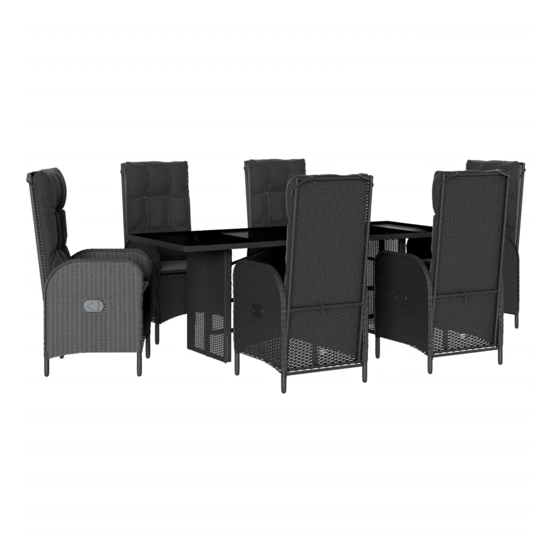Cet ensemble de salle à manger de jardin est un excellent choix pour les repas en plein air ou pour vous détendre dans le jardin, l'arrière-cour ou le patio. Matériau durable : la résine tressée, également connue sous le nom de poly rotin, est un matériau synthétique solide et nécessitant peu d'entretien qui ressemble au rotin naturel. Il est léger, facile à nettoyer et couramment utilisé pour les meubles d'extérieur en raison de sa durabilité et de ses propriétés de résistance aux intempéries. Dossier réglable : ce siège de jardin est doté d'une poignée. Vous pouvez régler le dossier dans n'importe quelle position en tirant sur la poignée et le remettre rapidement dans sa position initiale.Dessus en verre : le dessus de la table d'extérieur est fabriqué en verre trempé solide et durable, ce qui le rend facile à nettoyer avec un chiffon humide et ajoute une touche d'élégance à votre espace extérieur. Expérience d'assise confortable : ce mobilier d'extérieur, doté de coussins épais, offre une expérience d'assise confortable. Housse amovible et lavable : ces coussins de siège sont dotés de housses amovibles pour un lavage et un entretien faciles. Bon à savoir :Pour que vos meubles d'extérieur restent beaux, nous vous recommandons de les protéger avec une housse imperméable.