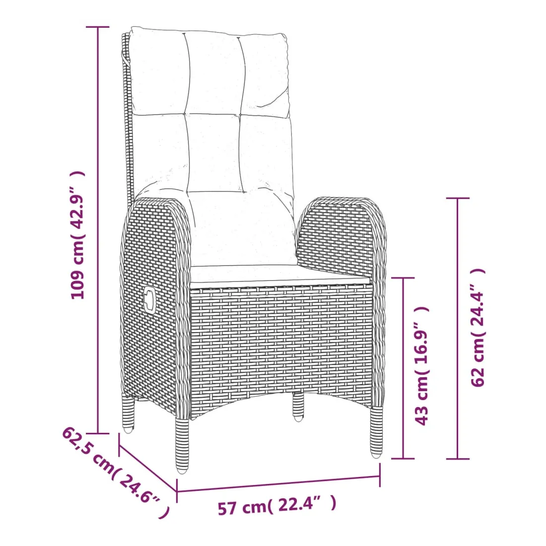 - Dimensions d'assise : 57 x 62,5 x 109 cm (l x P x H)