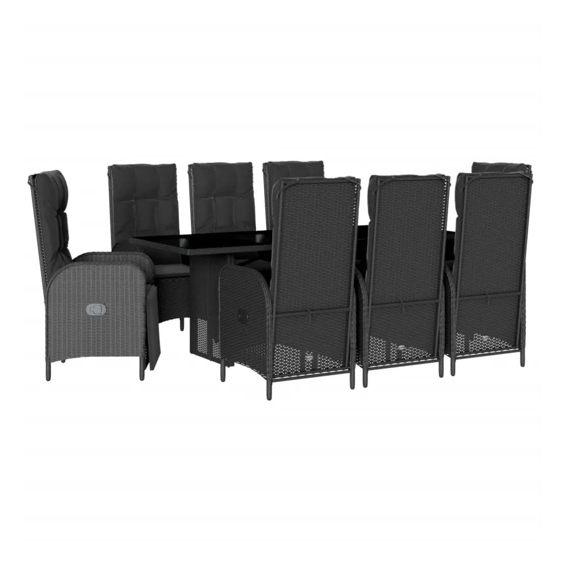 Cet ensemble de salle à manger de jardin est un excellent choix pour les repas en plein air ou pour vous détendre dans le jardin, l'arrière-cour ou le patio. Matériau durable : la résine tressée, également connue sous le nom de poly rotin, est un matériau synthétique solide et nécessitant peu d'entretien qui ressemble au rotin naturel. Il est léger, facile à nettoyer et couramment utilisé pour les meubles d'extérieur en raison de sa durabilité et de ses propriétés de résistance aux intempéries. Dossier réglable : ce siège de jardin est doté d'une poignée. Vous pouvez régler le dossier dans n'importe quelle position en tirant sur la poignée et le remettre rapidement dans sa position initiale.Dessus en verre : le dessus de la table d'extérieur est fabriqué en verre trempé solide et durable, ce qui le rend facile à nettoyer avec un chiffon humide et ajoute une touche d'élégance à votre espace extérieur. Expérience d'assise confortable : ce mobilier d'extérieur, doté de coussins épais, offre une expérience d'assise confortable. Housse amovible et lavable : ces coussins de siège sont dotés de housses amovibles pour un lavage et un entretien faciles. Bon à savoir :Pour que vos meubles d'extérieur restent beaux, nous vous recommandons de les protéger avec une housse imperméable.