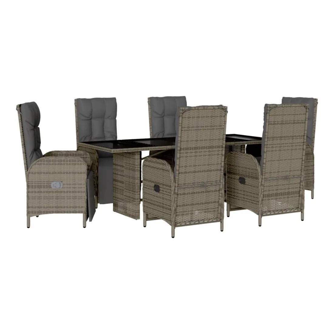 Cet ensemble de salle à manger de jardin est un excellent choix pour les repas en plein air ou pour vous détendre dans le jardin, l'arrière-cour ou le patio. Matériau durable : la résine tressée, également connue sous le nom de poly rotin, est un matériau synthétique solide et nécessitant peu d'entretien qui ressemble au rotin naturel. Il est léger, facile à nettoyer et couramment utilisé pour les meubles d'extérieur en raison de sa durabilité et de ses propriétés de résistance aux intempéries. Dossier réglable : ce siège de jardin est doté d'une poignée. Vous pouvez régler le dossier dans n'importe quelle position en tirant sur la poignée et le remettre rapidement dans sa position initiale.Dessus en verre : le dessus de la table d'extérieur est fabriqué en verre trempé solide et durable, ce qui le rend facile à nettoyer avec un chiffon humide et ajoute une touche d'élégance à votre espace extérieur. Expérience d'assise confortable : ce mobilier d'extérieur, doté de coussins épais, offre une expérience d'assise confortable. Housse amovible et lavable : ces coussins de siège sont dotés de housses amovibles pour un lavage et un entretien faciles. Bon à savoir :Pour que vos meubles d'extérieur restent beaux, nous vous recommandons de les protéger avec une housse imperméable.