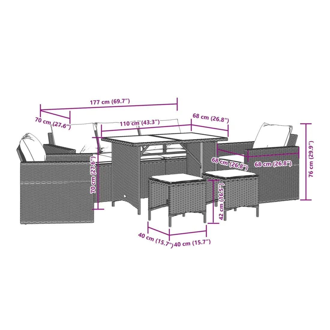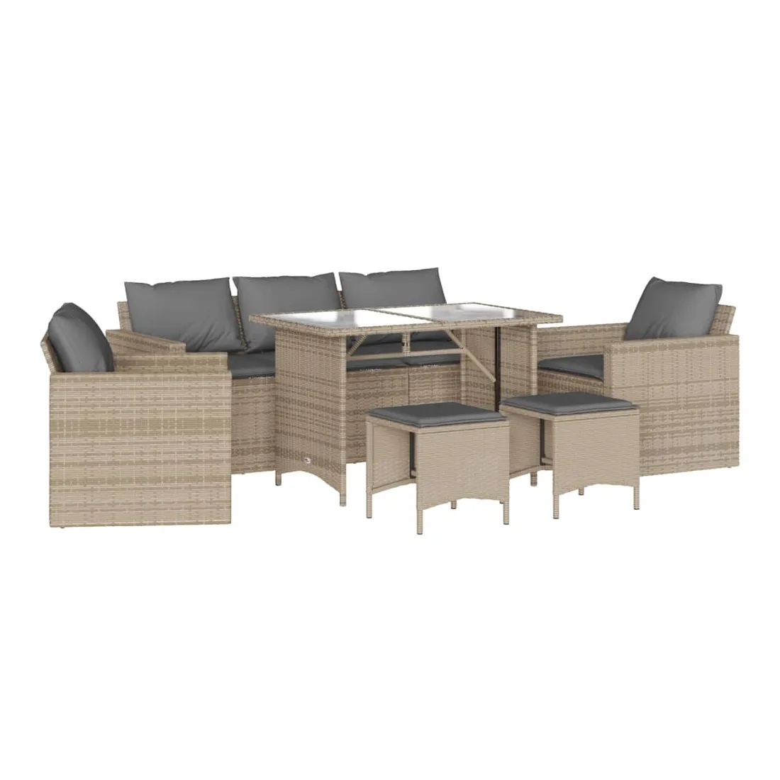 Cet ensemble de canapés de jardin est le complément parfait de votre arrière-cour, terrasse ou patio, offrant un espace confortable et accueillant pour discuter avec la famille et les amis ou simplement se détendre et profiter de l'extérieur. Matériau durable : la résine tressée, également connue sous le nom de poly rotin, est un matériau synthétique solide et nécessitant peu d'entretien qui ressemble au rotin naturel. Il est léger, facile à nettoyer et couramment utilisé pour les meubles d'extérieur en raison de sa durabilité et de ses propriétés de résistance aux intempéries.Expérience d'assise confortable : ce mobilier d'extérieur, doté de coussins épais, offre une expérience d'assise confortable.Housse amovible et lavable : ces coussins de siège sont dotés de housses amovibles pour un lavage et un entretien faciles.Dessus en verre : le dessus de la table d'extérieur est fabriqué en verre trempé solide et durable, ce qui le rend facile à nettoyer avec un chiffon humide et ajoute une touche d'élégance à votre espace extérieur.Cadre robuste et stable : le cadre en acier enduit de poudre assure la solidité et la stabilité du meuble de jardin pour une utilisation quotidienne à l'extérieur. Bon à savoir :Pour que vos meubles d'extérieur restent beaux, nous vous recommandons de les protéger avec une housse imperméable.