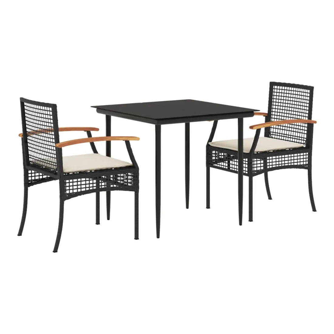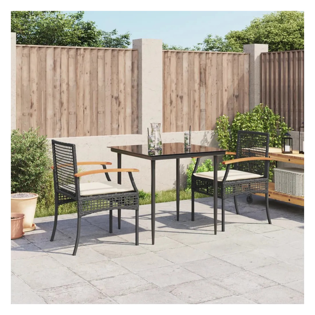 Cet ensemble de salle à manger de jardin est un excellent choix pour les repas en plein air ou pour vous détendre dans le jardin, dans l'arrière-cour ou sur la terrasse. Matériau durable : la résine tressée, également connue sous le nom de poly rotin, est un matériau synthétique solide et nécessitant peu d'entretien qui ressemble au rotin naturel. Il est léger, facile à nettoyer et couramment utilisé pour les meubles d'extérieur en raison de sa durabilité et de ses propriétés de résistance aux intempéries.Expérience d'assise confortable : ce mobilier d'extérieur, doté de coussins épais, offre une expérience d'assise confortable.Housse amovible et lavable : ces coussins de siège sont dotés de housses amovibles pour un lavage et un entretien faciles.Dessus en verre : le dessus de la table d'extérieur est fabriqué en verre trempé solide et durable, ce qui le rend facile à nettoyer avec un chiffon humide et ajoute une touche d'élégance à votre espace extérieur.Cadre robuste et stable : le cadre en acier enduit de poudre assure la solidité et la stabilité du meuble de jardin pour une utilisation quotidienne à l'extérieur. Bon à savoir :Pour que vos meubles d'extérieur restent beaux, nous vous recommandons de les protéger avec une housse imperméable.