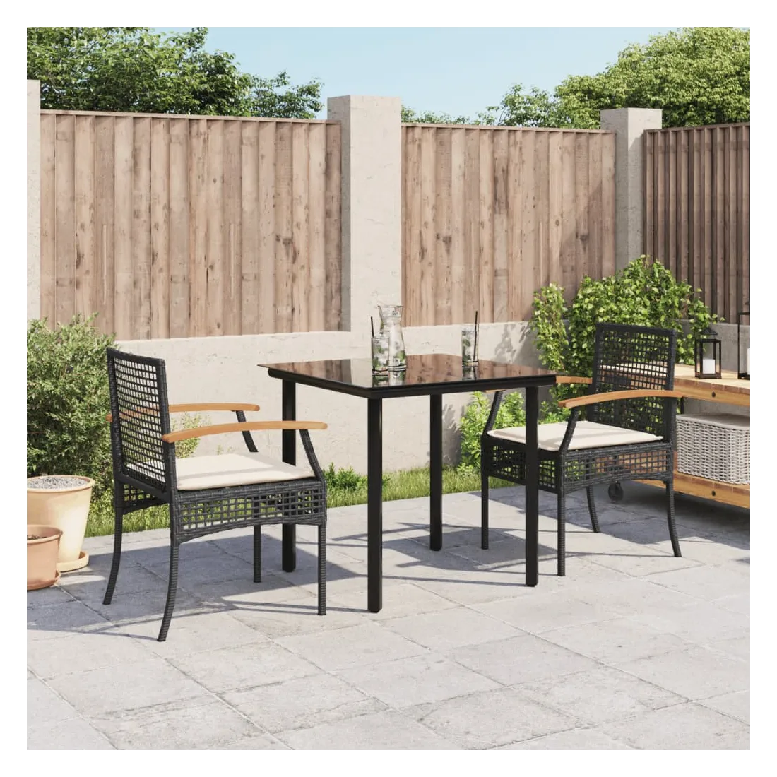 Cet ensemble de salle à manger de jardin est un excellent choix pour les repas en plein air ou pour vous détendre dans le jardin, dans l'arrière-cour ou sur la terrasse. Matériau durable : la résine tressée, également connue sous le nom de poly rotin, est un matériau synthétique solide et nécessitant peu d'entretien qui ressemble au rotin naturel. Il est léger, facile à nettoyer et couramment utilisé pour les meubles d'extérieur en raison de sa durabilité et de ses propriétés de résistance aux intempéries.Expérience d'assise confortable : ce mobilier d'extérieur, doté de coussins épais, offre une expérience d'assise confortable.Housse amovible et lavable : ces coussins de siège sont dotés de housses amovibles pour un lavage et un entretien faciles.Dessus en verre : le dessus de la table d'extérieur est fabriqué en verre trempé solide et durable, ce qui le rend facile à nettoyer avec un chiffon humide et ajoute une touche d'élégance à votre espace extérieur.Cadre robuste et stable : le cadre en acier enduit de poudre assure la solidité et la stabilité du meuble de jardin pour une utilisation quotidienne à l'extérieur. Bon à savoir :Pour que vos meubles d'extérieur restent beaux, nous vous recommandons de les protéger avec une housse imperméable.