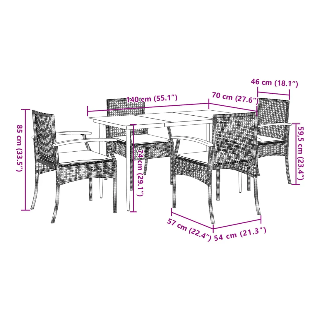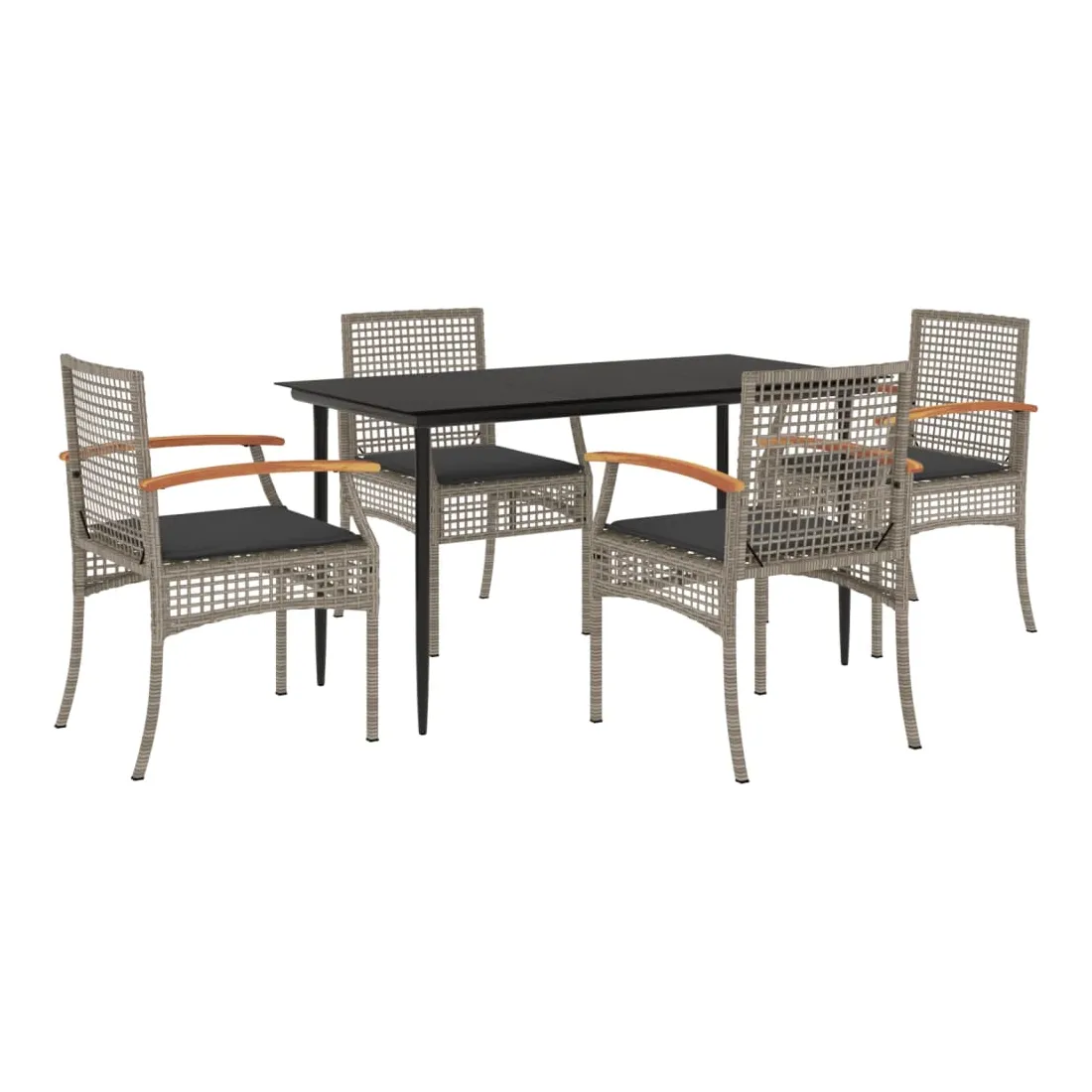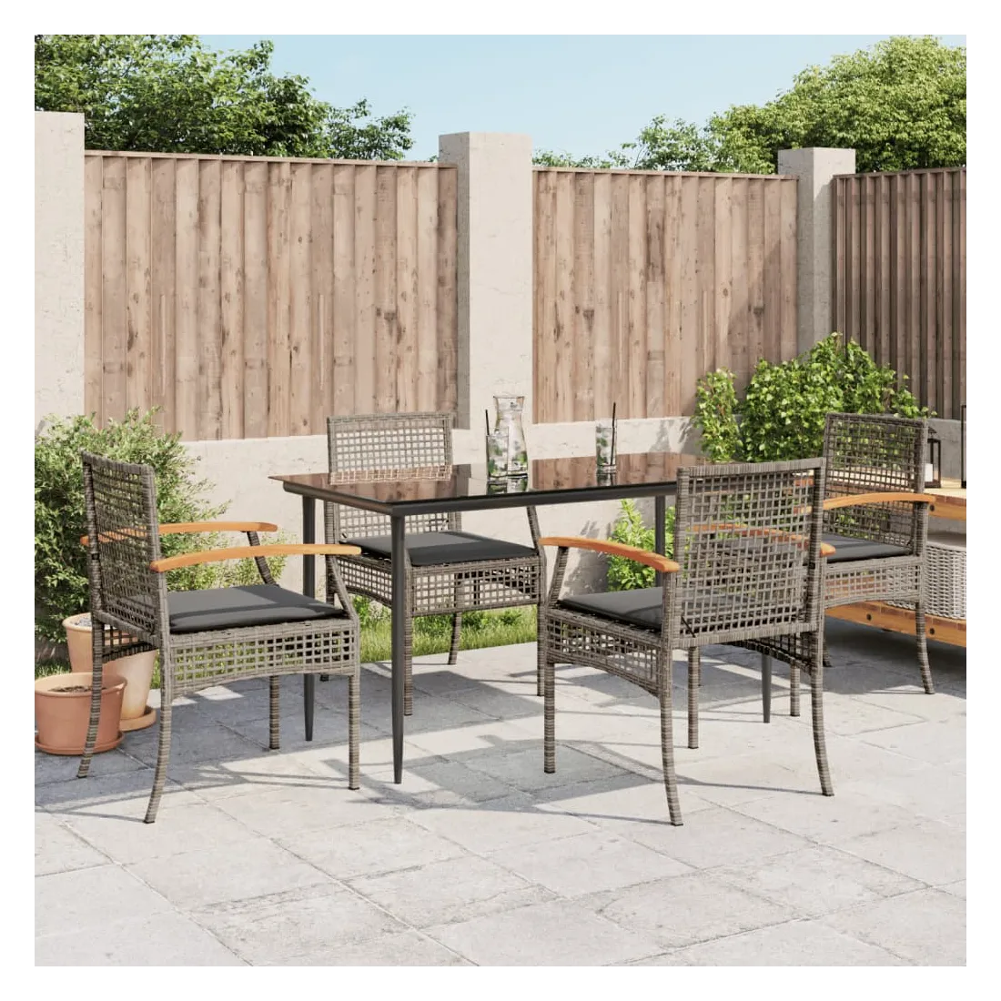 Cet ensemble de salle à manger de jardin est un excellent choix pour les repas en plein air ou pour vous détendre dans le jardin, dans l'arrière-cour ou sur la terrasse. Matériau durable : la résine tressée, également connue sous le nom de poly rotin, est un matériau synthétique solide et nécessitant peu d'entretien qui ressemble au rotin naturel. Il est léger, facile à nettoyer et couramment utilisé pour les meubles d'extérieur en raison de sa durabilité et de ses propriétés de résistance aux intempéries.Expérience d'assise confortable : ce mobilier d'extérieur, doté de coussins épais, offre une expérience d'assise confortable.Housse amovible et lavable : ces coussins de siège sont dotés de housses amovibles pour un lavage et un entretien faciles.Dessus en verre : le dessus de la table d'extérieur est fabriqué en verre trempé solide et durable, ce qui le rend facile à nettoyer avec un chiffon humide et ajoute une touche d'élégance à votre espace extérieur.Cadre robuste et stable : le cadre en acier enduit de poudre assure la solidité et la stabilité du meuble de jardin pour une utilisation quotidienne à l'extérieur. Bon à savoir :Pour que vos meubles d'extérieur restent beaux, nous vous recommandons de les protéger avec une housse imperméable.