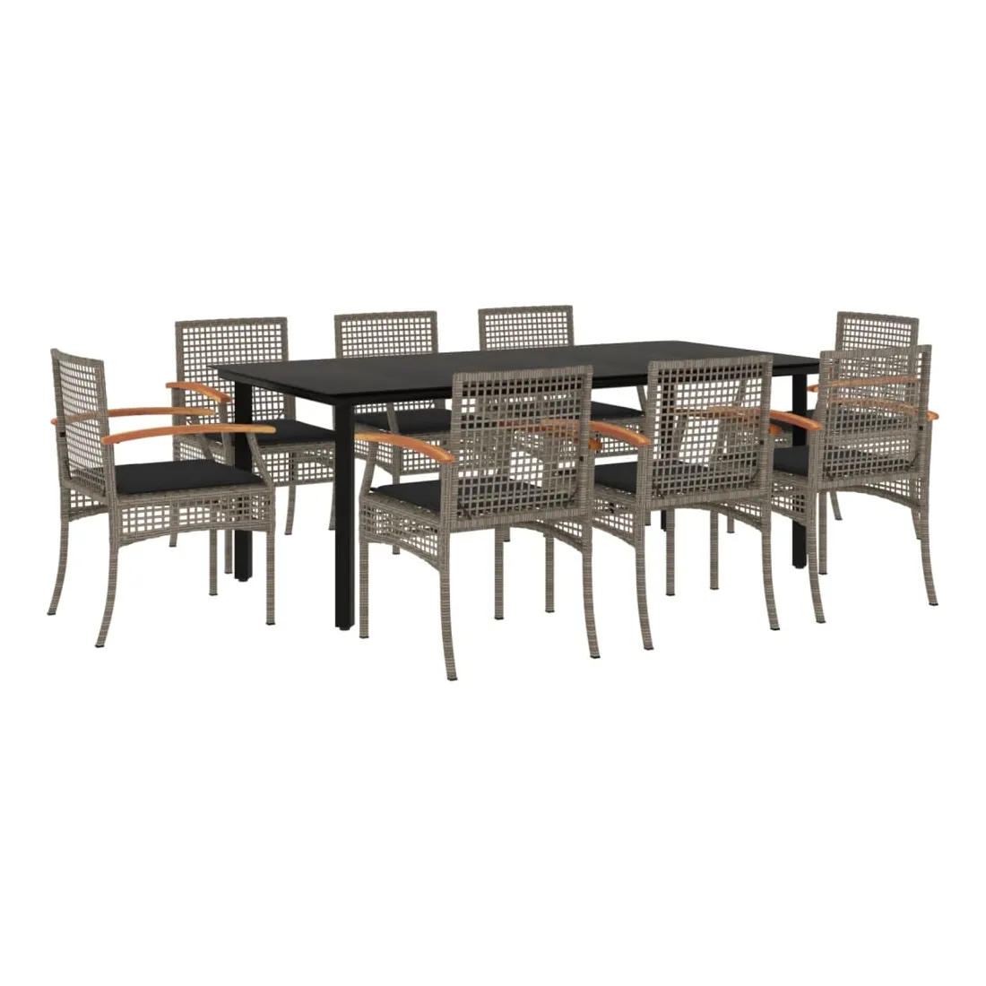 Cet ensemble de salle à manger de jardin est un excellent choix pour les repas en plein air ou pour vous détendre dans le jardin, dans l'arrière-cour ou sur la terrasse. Matériau durable : la résine tressée, également connue sous le nom de poly rotin, est un matériau synthétique solide et nécessitant peu d'entretien qui ressemble au rotin naturel. Il est léger, facile à nettoyer et couramment utilisé pour les meubles d'extérieur en raison de sa durabilité et de ses propriétés de résistance aux intempéries.Expérience d'assise confortable : ce mobilier d'extérieur, doté de coussins épais, offre une expérience d'assise confortable.Housse amovible et lavable : ces coussins de siège sont dotés de housses amovibles pour un lavage et un entretien faciles.Dessus en verre : le dessus de la table d'extérieur est fabriqué en verre trempé solide et durable, ce qui le rend facile à nettoyer avec un chiffon humide et ajoute une touche d'élégance à votre espace extérieur.Cadre robuste et stable : le cadre en acier enduit de poudre assure la solidité et la stabilité du meuble de jardin pour une utilisation quotidienne à l'extérieur. Bon à savoir :Pour que vos meubles d'extérieur restent beaux, nous vous recommandons de les protéger avec une housse imperméable.