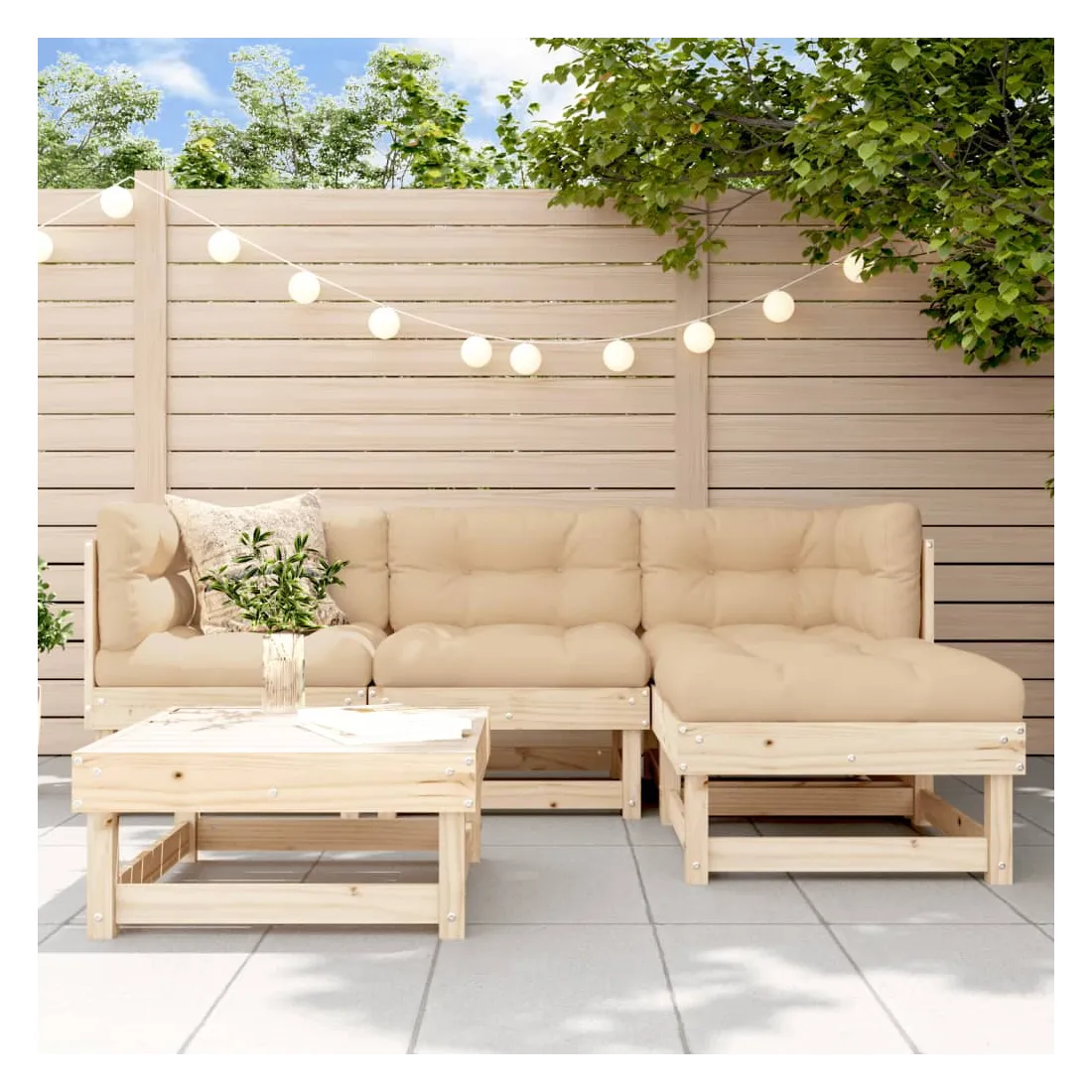 Ce salon de jardin en bois, qui se démarque par son design à lattes, sera un excellent supplément à votre jardin, patio ou terrasse pour profiter d'un moment agréable avec votre famille ou vos amis. Bois de pin massif : le bois de pin massif est un matériau naturel magnifique. Le bois de pin a un grain droit et les nœuds donnent au matériau son aspect caractéristique et rustique.Cadre robuste et stable : les cadres en bois rendent l'ensemble de salon robuste et stable pour une utilisation quotidienne à l'extérieur.Design modulaire : le canapé est flexible et facile à déplacer. Vous pouvez le combiner avec d'autres segments modulaires de la boutique en ligne pour créer vos propres configurations de salon de jardin ! Bon à savoir :Pour que vos meubles d'extérieur restent beaux, nous vous recommandons de les protéger avec une housse imperméable.Les coussins ne sont pas inclus dans la livraison.