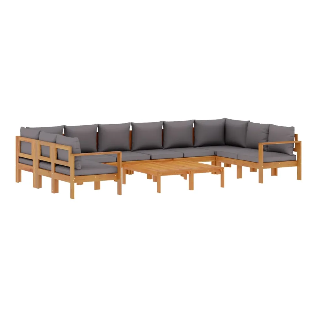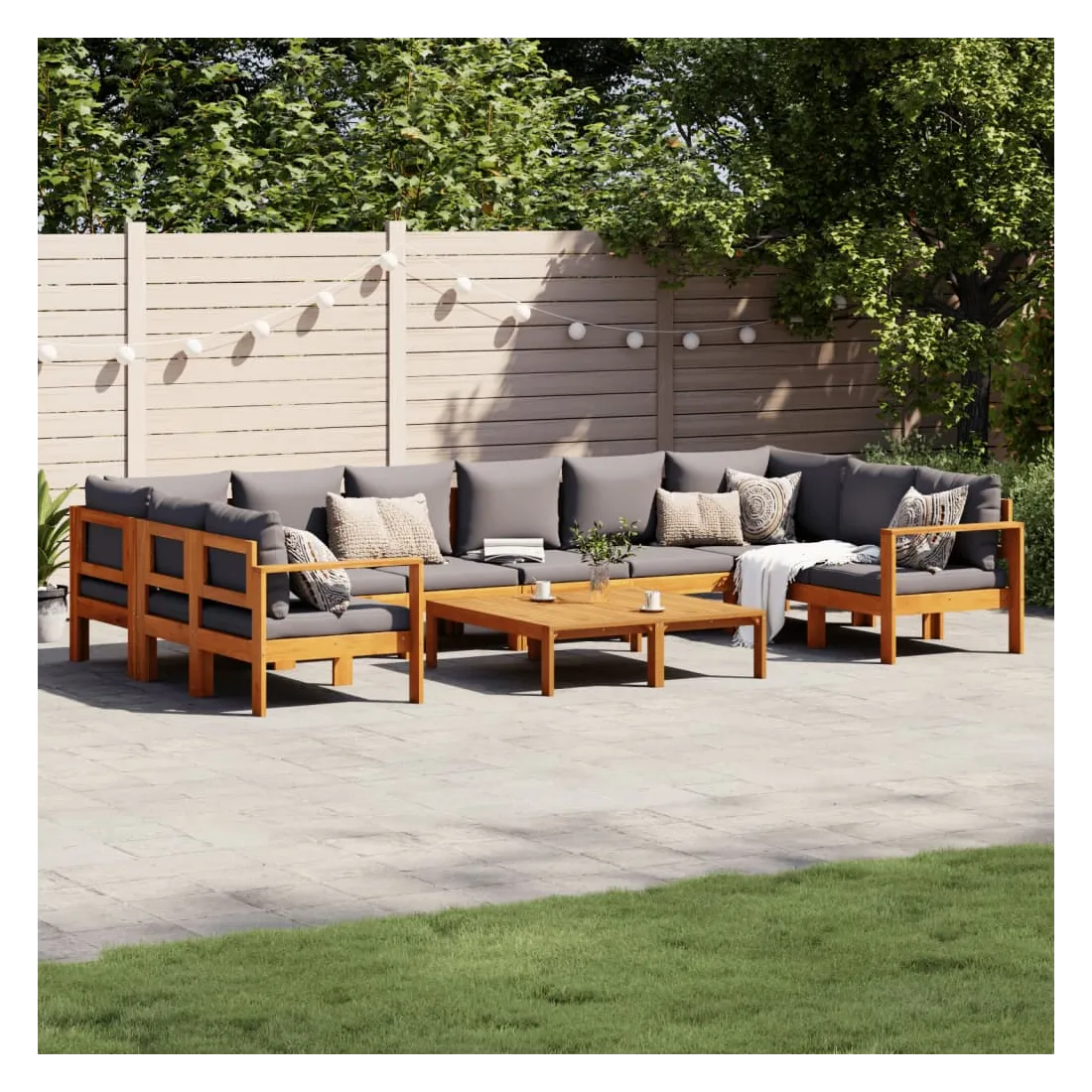 Cet ensemble de canapés de jardin est le complément parfait de votre arrière-cour, terrasse ou patio, offrant un espace confortable et accueillant pour discuter avec la famille et les amis ou simplement se détendre et profiter de l'extérieur. Matériau durable : le bois d'acacia massif est un matériau naturel magnifique. Le bois d'acacia un bois dur tropical, qui est dense, robuste et durable.Dessus stable et facile à nettoyer : cette table de jardin a un dessus en bois d'acacia robuste, durable et facile à nettoyer avec un chiffon humide.Expérience d'assise confortable : ce mobilier d'extérieur, doté de coussins épais, offre une expérience d'assise confortable. Housse amovible et lavable : ces coussins de siège sont dotés de housses amovibles pour un lavage et un entretien faciles.Conception modulaire : cet ensemble de meubles d'extérieur a une conception modulaire, ce qui le rend complètement flexible et facile à déplacer, afin que vous puissiez créer un agencement de meubles d'extérieur personnalisé. Bon à savoir :Pour que vos meubles d'extérieur restent beaux, nous vous recommandons de les protéger avec une housse imperméable.