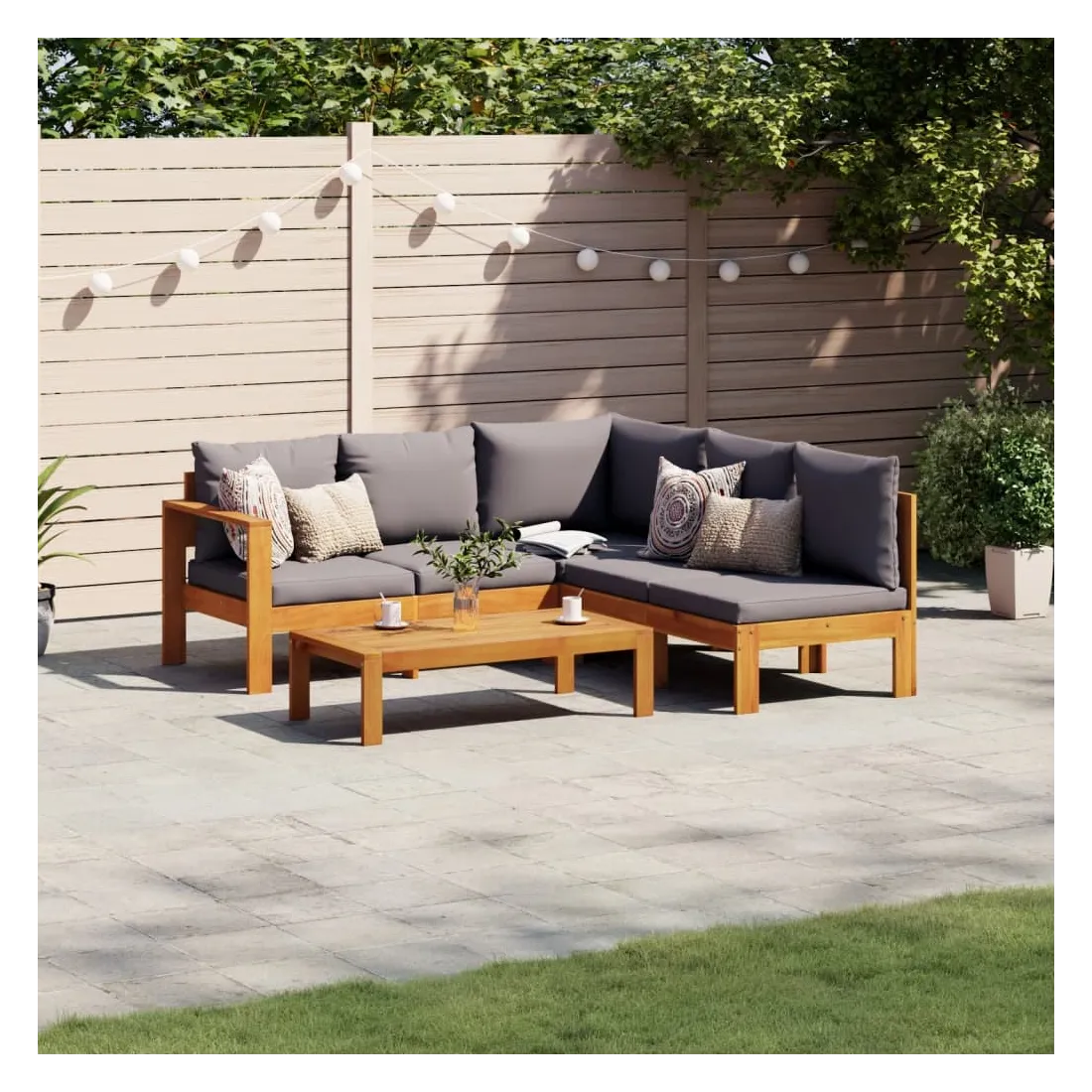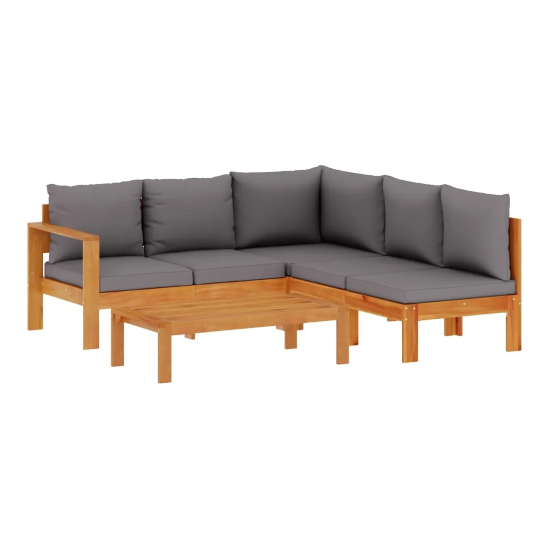 Cet ensemble de canapés de jardin est le complément parfait de votre arrière-cour, terrasse ou patio, offrant un espace confortable et accueillant pour discuter avec la famille et les amis ou simplement se détendre et profiter de l'extérieur. Matériau durable : le bois d'acacia massif est un matériau naturel magnifique. Le bois d'acacia un bois dur tropical, qui est dense, robuste et durable.Dessus stable et facile à nettoyer : cette table de jardin a un dessus en bois d'acacia robuste, durable et facile à nettoyer avec un chiffon humide.Expérience d'assise confortable : ce mobilier d'extérieur, doté de coussins épais, offre une expérience d'assise confortable. Housse amovible et lavable : ces coussins de siège sont dotés de housses amovibles pour un lavage et un entretien faciles.Conception modulaire : cet ensemble de meubles d'extérieur a une conception modulaire, ce qui le rend complètement flexible et facile à déplacer, afin que vous puissiez créer un agencement de meubles d'extérieur personnalisé. Bon à savoir :Pour que vos meubles d'extérieur restent beaux, nous vous recommandons de les protéger avec une housse imperméable.