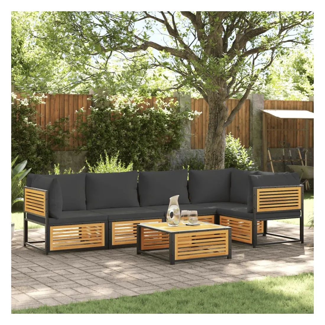 Salon de jardin avec coussins 6 pcs bois d'acacia solide