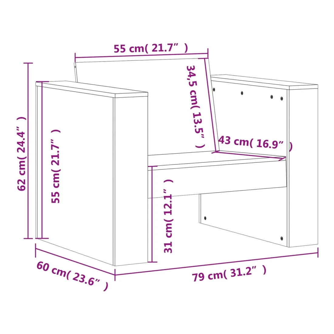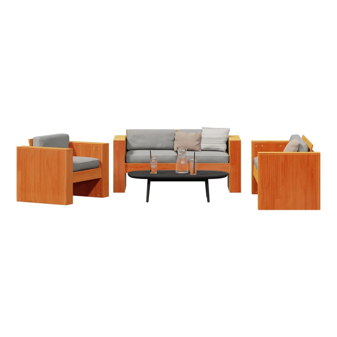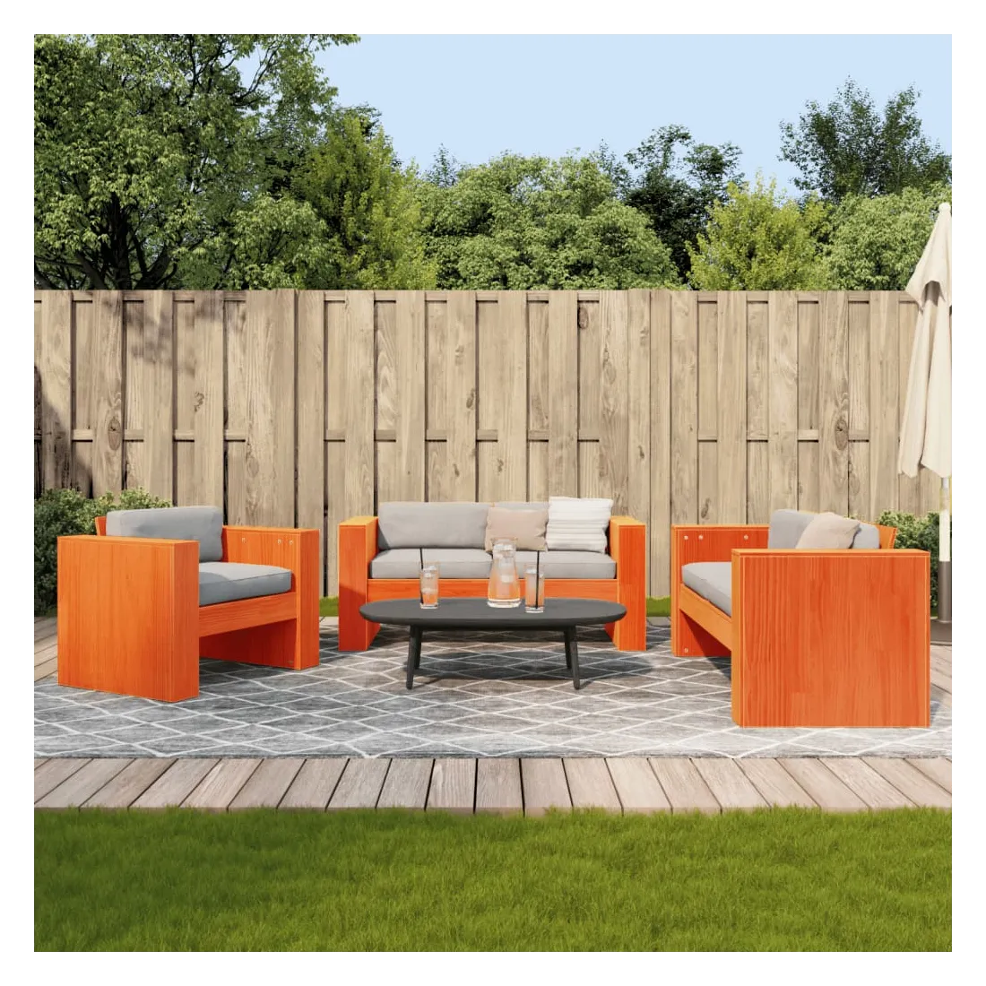 vidaXLCet ensemble de salon de jardin en bois a un design élégant et constitue un excellent choix pour vous détendre et profiter du jardin ou du patio. Bois de pin massif : l'ensemble de salon d'extérieur est fabriqué en bois de pin massif pour plus de robustesse et de stabilité. Le bois de pin solide est un beau matériau naturel. Le bois de pin a un grain droit et les nœuds donnent au matériau son aspect caractéristique et rustique.Expérience d'assise confortable : doté d'accoudoirs et d'un dossier, le salon de jardin vous offre un confort optimal.Nombreuses applications : le siège de jardin est parfait pour tout porche avant, patio, arrière-cour, pelouse, jardin, etc. Bon à savoir :Pour que vos meubles d'extérieur restent beaux, nous vous recommandons de les protéger avec une housse imperméable.