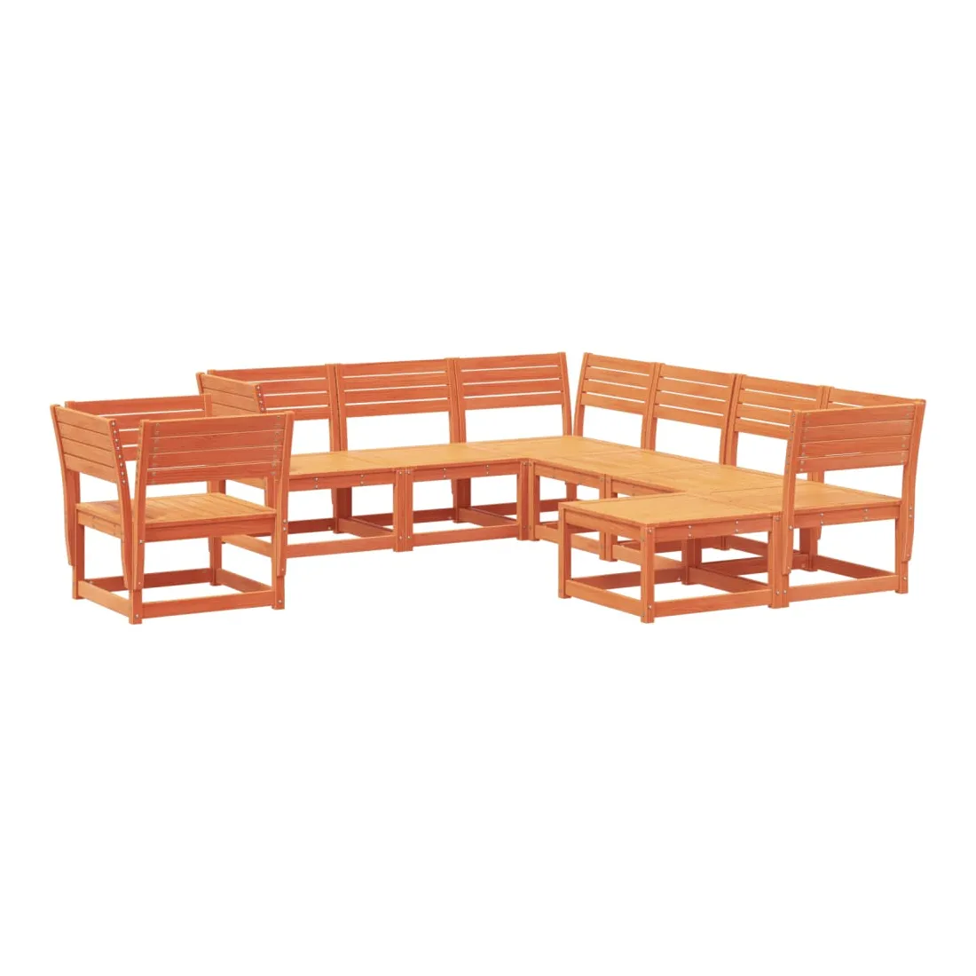 Salon de jardin 8 pcs cire marron bois de pin massif