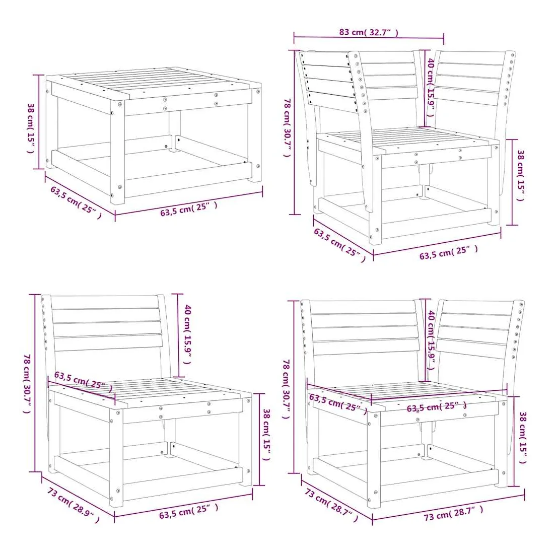 vidaXLCet ensemble de salon de jardin en bois a un design élégant et constitue un excellent choix pour vous détendre et profiter du jardin ou du patio. Bois de pin massif : le bois de pin massif est un matériau naturel magnifique. Le bois de pin a un grain droit et les nœuds donnent au matériau son aspect caractéristique et rustique. Design à lattes : le design à lattes du meuble en bois empêche l'accumulation de l'eau, ce qui permet de garder le siège au sec et empêchant la pourriture indésirable. Expérience d'assise confortable : le dossier et l'accoudoir ajoutent un confort d'assise supplémentaire à l'ensemble de mobilier de jardin. Conception modulaire : cet ensemble de meubles d'extérieur a une conception modulaire, ce qui le rend complètement flexible et facile à déplacer, afin que vous puissiez créer un agencement de meubles d'extérieur personnalisé. Bon à savoir :Pour que vos meubles d'extérieur restent beaux, nous vous recommandons de les protéger avec une housse imperméable.