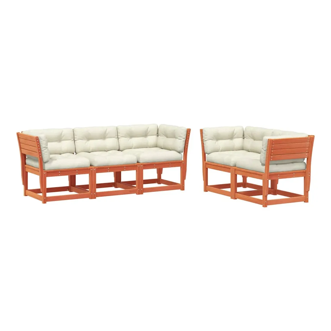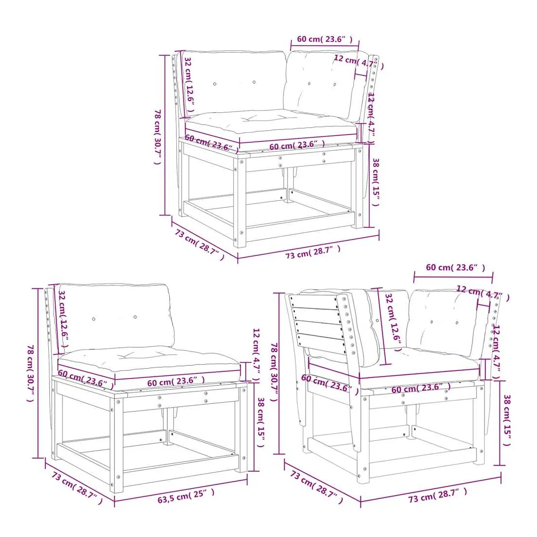 Cet ensemble de canapés de jardin est le complément parfait de votre arrière-cour, terrasse ou patio, offrant un espace confortable et accueillant pour discuter avec la famille et les amis ou simplement se détendre et profiter de l'extérieur. Bois de pin massif : le bois de pin massif est un matériau naturel magnifique. Le bois de pin a un grain droit et les nœuds donnent au matériau son aspect caractéristique et rustique.Expérience d'assise confortable : ce mobilier d'extérieur, doté de dossiers et de coussin épais rembourré, offre une expérience d'assise confortable.Conception à lattes : la conception à lattes du canapé d'extérieur empêche efficacement l'eau de s'accumuler, ce qui garantit que l'assise reste sèche et exempte de tout risque de pourriture.Conception modulaire : cet ensemble de meubles d'extérieur a une conception modulaire, ce qui le rend complètement flexible et facile à déplacer, afin que vous puissiez créer un agencement de meubles d'extérieur personnalisé. Bon à savoir :Pour que vos meubles d'extérieur restent beaux, nous vous recommandons de les protéger avec une housse imperméable.