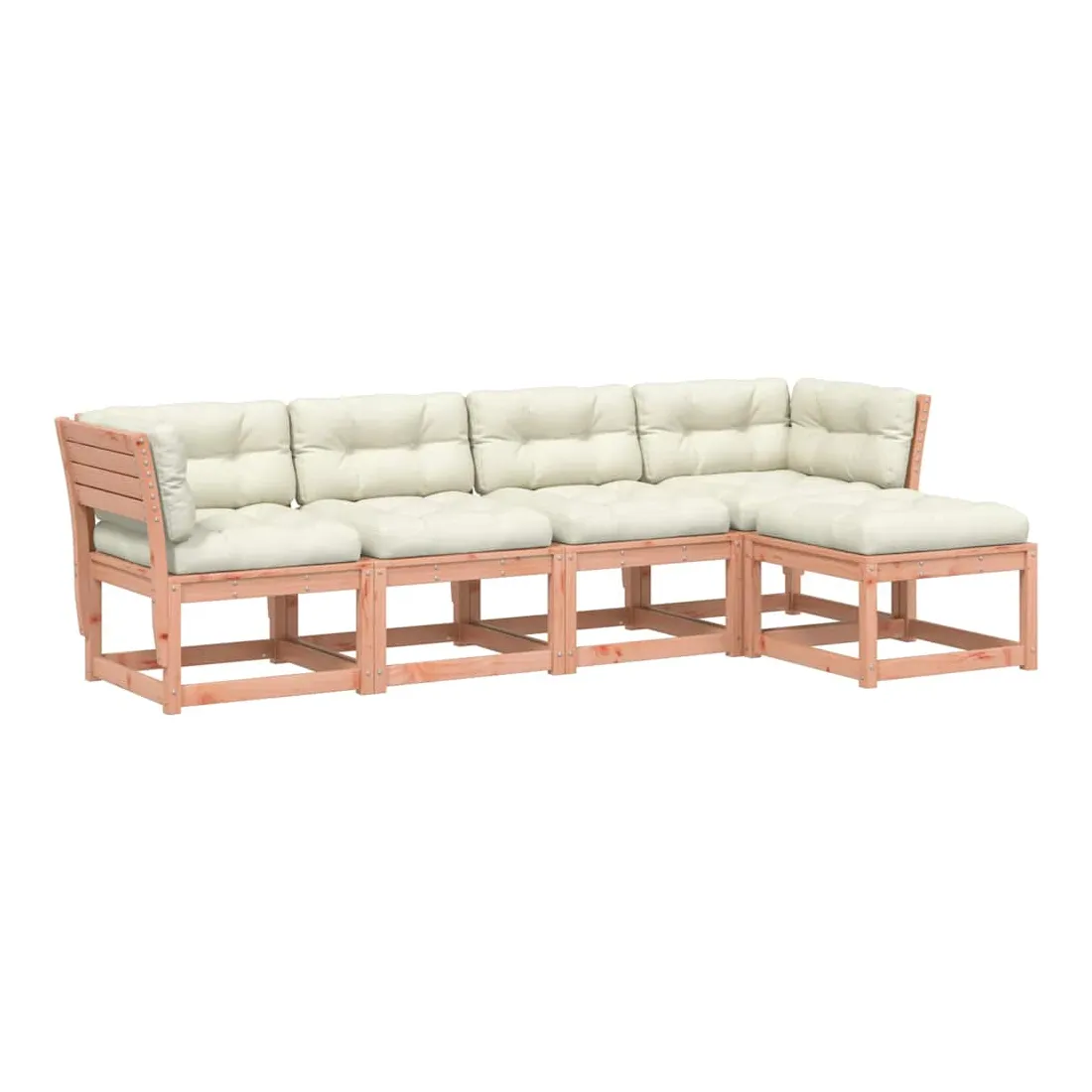 Cet ensemble de canapés de jardin est le complément parfait de votre arrière-cour, terrasse ou patio, offrant un espace confortable et accueillant pour discuter avec la famille et les amis ou simplement se détendre et profiter de l'extérieur. Bois de douglas massif : le bois de douglas massif est un bois très durable qui fonctionne bien pour l'extérieur. Le bois de douglas est également suffisamment solide pour être travaillé avec un minimum de soin, même sous l'influence des intempéries.Expérience d'assise confortable : ce mobilier d'extérieur, doté de dossiers et de coussin épais rembourré, offre une expérience d'assise confortable.Conception à lattes : la conception à lattes du canapé d'extérieur empêche efficacement l'eau de s'accumuler, ce qui garantit que l'assise reste sèche et exempte de tout risque de pourriture.Conception modulaire : cet ensemble de meubles d'extérieur a une conception modulaire, ce qui le rend complètement flexible et facile à déplacer, afin que vous puissiez créer un agencement de meubles d'extérieur personnalisé. Bon à savoir :Pour que vos meubles d'extérieur restent beaux, nous vous recommandons de les protéger avec une housse imperméable.