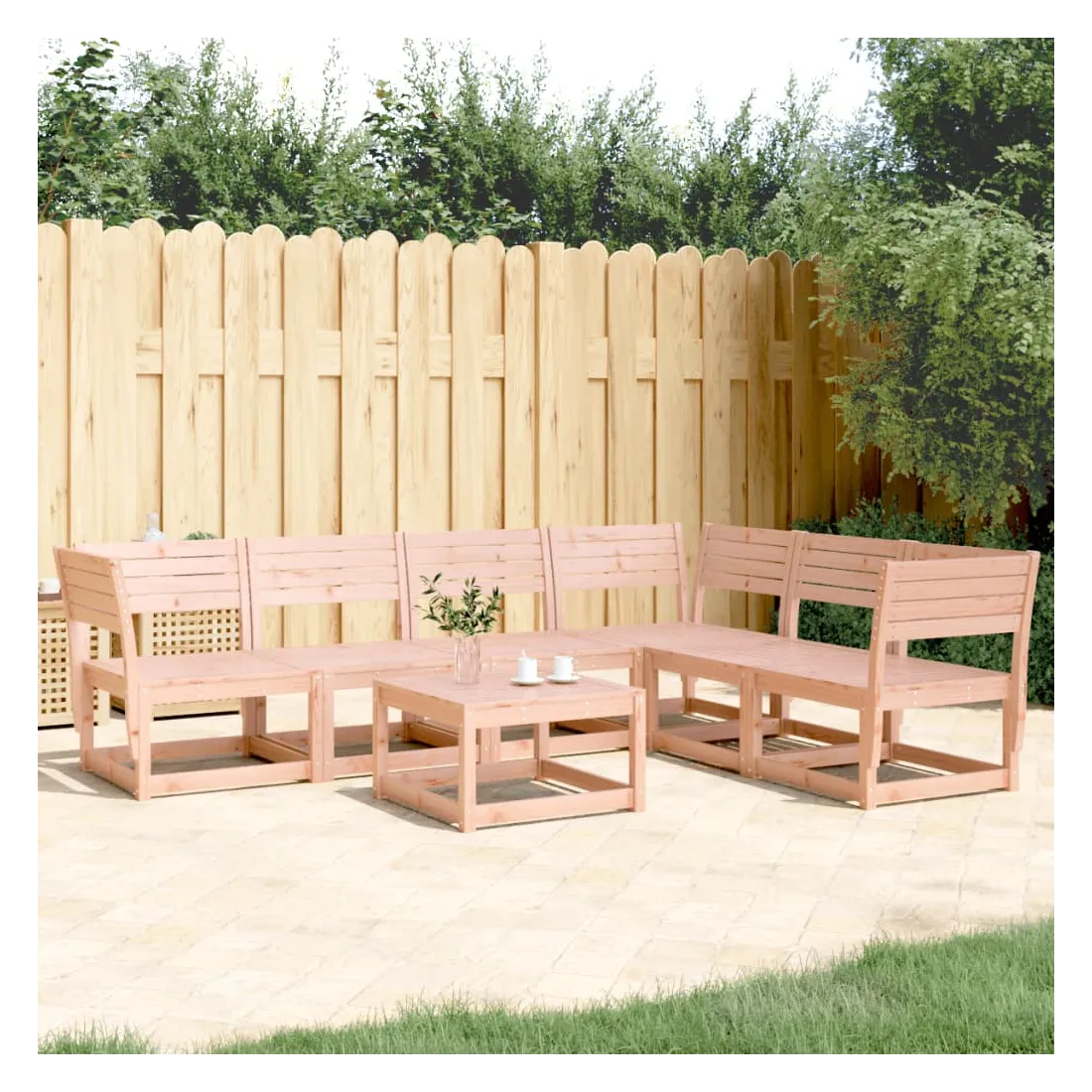 Cet ensemble de canapés de jardin est le complément parfait de votre arrière-cour, terrasse ou patio, offrant un espace confortable et accueillant pour discuter avec la famille et les amis ou simplement se détendre et profiter de l'extérieur. Bois de douglas massif : le bois de douglas massif est un bois très durable qui fonctionne bien pour l'extérieur. Le bois de douglas est également suffisamment solide pour être travaillé avec un minimum de soin, même sous l'influence des intempéries.Expérience d'assise confortable : ce mobilier d'extérieur, doté de dossiers, offre une expérience d'assise confortable.Conception à lattes : la conception à lattes du canapé d'extérieur empêche efficacement l'eau de s'accumuler, ce qui garantit que l'assise reste sèche et exempte de tout risque de pourriture.Conception modulaire : cet ensemble de meubles d'extérieur a une conception modulaire, ce qui le rend complètement flexible et facile à déplacer, afin que vous puissiez créer un agencement de meubles d'extérieur personnalisé. Bon à savoir :Pour que vos meubles d'extérieur restent beaux, nous vous recommandons de les protéger avec une housse imperméable.