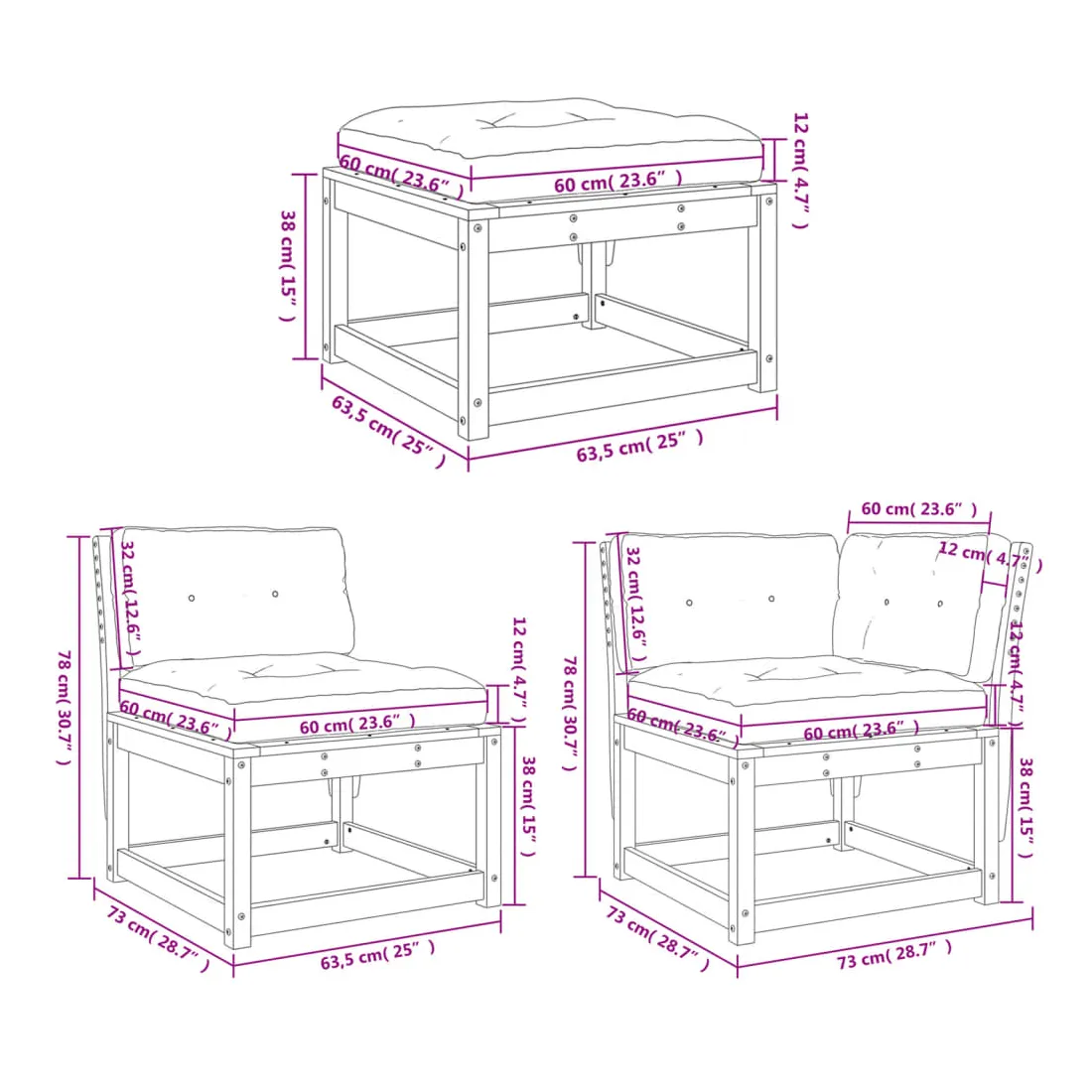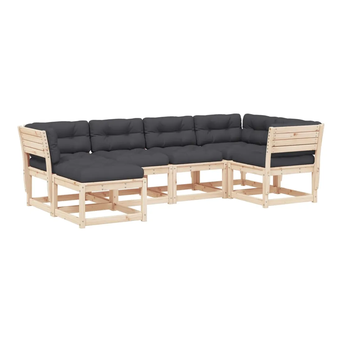 Cet ensemble de canapés de jardin est le complément parfait de votre arrière-cour, terrasse ou patio, offrant un espace confortable et accueillant pour discuter avec la famille et les amis ou simplement se détendre et profiter de l'extérieur. Bois de pin massif : le bois de pin massif est un matériau naturel magnifique. Le bois de pin a un grain droit et les nœuds donnent au matériau son aspect caractéristique et rustique.Expérience d'assise confortable : ce mobilier d'extérieur, doté de dossiers et de coussin épais rembourré, offre une expérience d'assise confortable.Conception à lattes : la conception à lattes du canapé d'extérieur empêche efficacement l'eau de s'accumuler, ce qui garantit que l'assise reste sèche et exempte de tout risque de pourriture.Conception modulaire : cet ensemble de meubles d'extérieur a une conception modulaire, ce qui le rend complètement flexible et facile à déplacer, afin que vous puissiez créer un agencement de meubles d'extérieur personnalisé. Bon à savoir :Pour que vos meubles d'extérieur restent beaux, nous vous recommandons de les protéger avec une housse imperméable.
