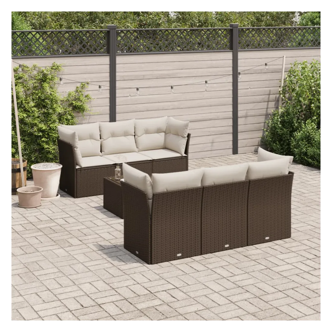 Cet ensemble de canapés de jardin est le complément parfait de votre arrière-cour, terrasse ou patio, offrant un espace confortable et accueillant pour discuter avec la famille et les amis ou simplement se détendre et profiter de l'extérieur. Matériau durable : la résine tressée, également connue sous le nom de poly rotin, est un matériau synthétique solide et nécessitant peu d'entretien qui ressemble au rotin naturel. Il est léger, facile à nettoyer et couramment utilisé pour les meubles d'extérieur en raison de sa durabilité et de ses propriétés de résistance aux intempéries.Expérience d'assise confortable : cet ensemble de meubles d'extérieur, doté de coussins épais, offre une expérience d'assise confortable.Housse amovible et lavable : ces coussins de siège sont dotés de housses amovibles pour un lavage et un entretien faciles.Dessus en verre : le dessus de la table d'extérieur est fabriqué en verre trempé solide et durable, ce qui le rend facile à nettoyer avec un chiffon humide et ajoute une touche d'élégance à votre espace extérieur.Conception modulaire : cet ensemble de meubles d'extérieur a une conception modulaire, ce qui le rend complètement flexible et facile à déplacer, afin que vous puissiez créer un agencement de meubles d'extérieur personnalisé. Bon à savoir :Pour que vos meubles d'extérieur restent beaux, nous vous recommandons de les protéger avec une housse imperméable.