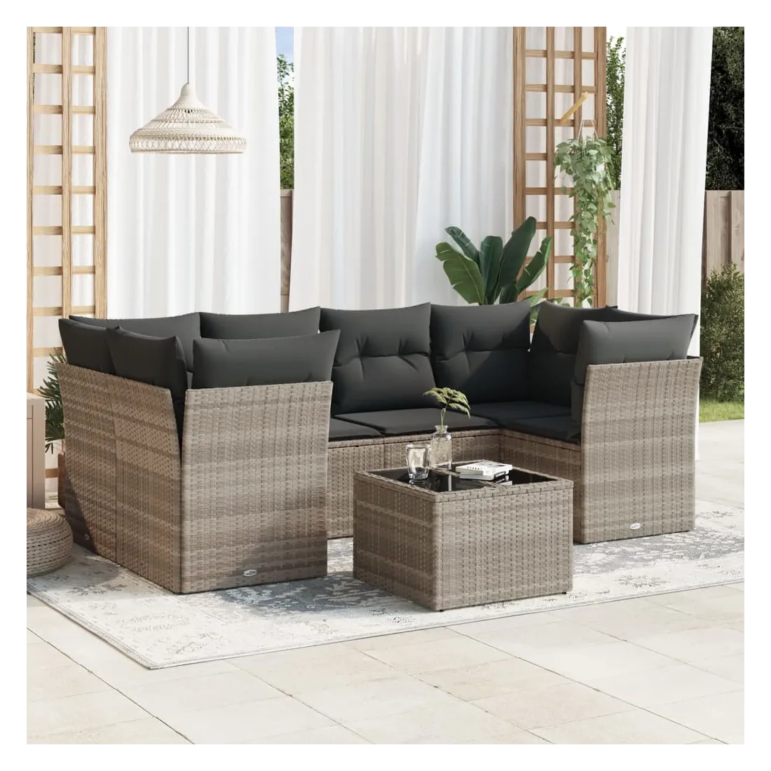 Cet ensemble de canapés de jardin est le complément parfait de votre arrière-cour, terrasse ou patio, offrant un espace confortable et accueillant pour discuter avec la famille et les amis ou simplement se détendre et profiter de l'extérieur. Matériau durable : la résine tressée, également connue sous le nom de poly rotin, est un matériau synthétique solide et nécessitant peu d'entretien qui ressemble au rotin naturel. Il est léger, facile à nettoyer et couramment utilisé pour les meubles d'extérieur en raison de sa durabilité et de ses propriétés de résistance aux intempéries.Expérience d'assise confortable : cet ensemble de meubles d'extérieur, doté de coussins épais, offre une expérience d'assise confortable.Housse amovible et lavable : ces coussins de siège sont dotés de housses amovibles pour un lavage et un entretien faciles.Dessus en verre : le dessus de la table d'extérieur est fabriqué en verre trempé solide et durable, ce qui le rend facile à nettoyer avec un chiffon humide et ajoute une touche d'élégance à votre espace extérieur.Conception modulaire : cet ensemble de meubles d'extérieur a une conception modulaire, ce qui le rend complètement flexible et facile à déplacer, afin que vous puissiez créer un agencement de meubles d'extérieur personnalisé. Bon à savoir :Pour que vos meubles d'extérieur restent beaux, nous vous recommandons de les protéger avec une housse imperméable.