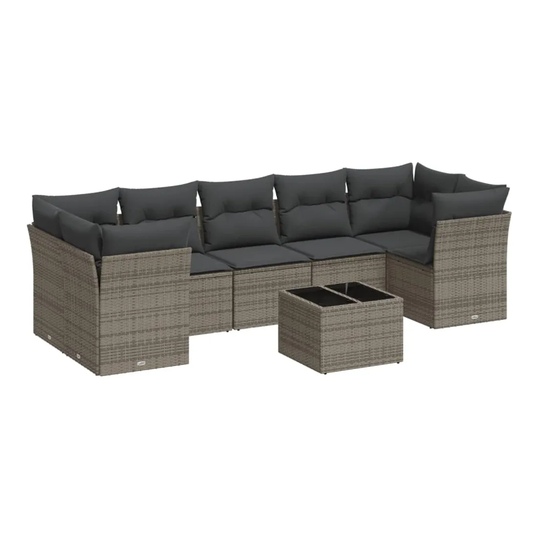 Salon de jardin 8 pcs avec coussins gris résine tressée