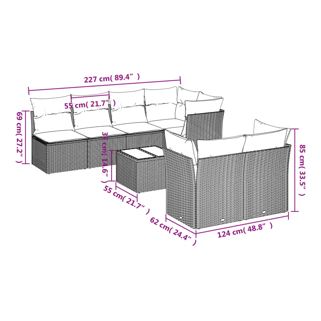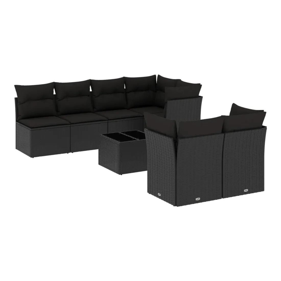 Salon de jardin 8 pcs avec coussins noir résine tressée