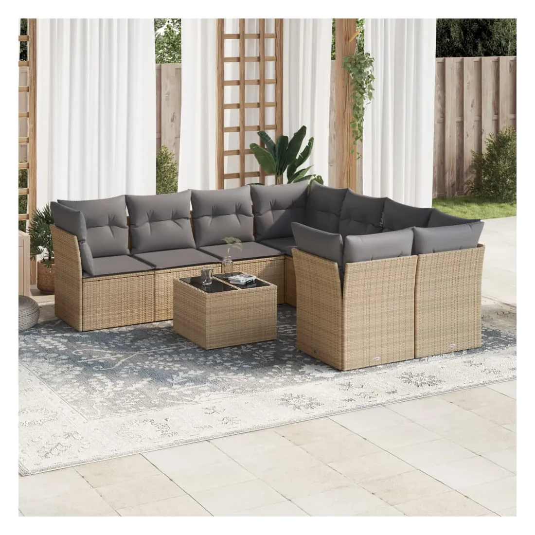 Cet ensemble de canapés de jardin est le complément parfait de votre arrière-cour, terrasse ou patio, offrant un espace confortable et accueillant pour discuter avec la famille et les amis ou simplement se détendre et profiter de l'extérieur. Matériau durable : la résine tressée, également connue sous le nom de poly rotin, est un matériau synthétique solide et nécessitant peu d'entretien qui ressemble au rotin naturel. Il est léger, facile à nettoyer et couramment utilisé pour les meubles d'extérieur en raison de sa durabilité et de ses propriétés de résistance aux intempéries.Expérience d'assise confortable : cet ensemble de meubles d'extérieur, doté de coussins épais, offre une expérience d'assise confortable.Housse amovible et lavable : ces coussins de siège sont dotés de housses amovibles pour un lavage et un entretien faciles.Dessus en verre : le dessus de la table d'extérieur est fabriqué en verre trempé solide et durable, ce qui le rend facile à nettoyer avec un chiffon humide et ajoute une touche d'élégance à votre espace extérieur.Conception modulaire : cet ensemble de meubles d'extérieur a une conception modulaire, ce qui le rend complètement flexible et facile à déplacer, afin que vous puissiez créer un agencement de meubles d'extérieur personnalisé. Bon à savoir :Pour que vos meubles d'extérieur restent beaux, nous vous recommandons de les protéger avec une housse imperméable.