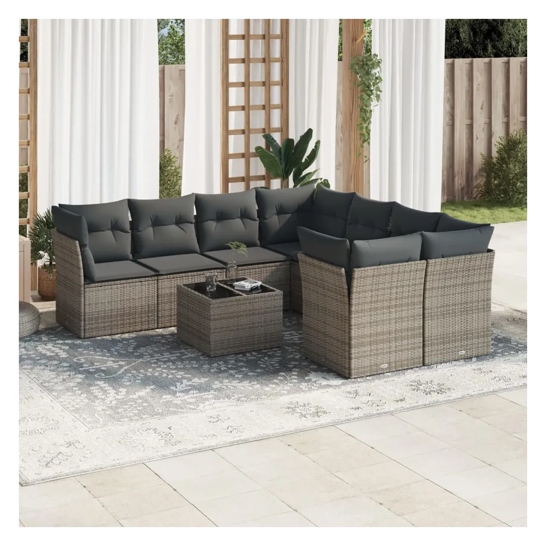 Cet ensemble de canapés de jardin est le complément parfait de votre arrière-cour, terrasse ou patio, offrant un espace confortable et accueillant pour discuter avec la famille et les amis ou simplement se détendre et profiter de l'extérieur. Matériau durable : la résine tressée, également connue sous le nom de poly rotin, est un matériau synthétique solide et nécessitant peu d'entretien qui ressemble au rotin naturel. Il est léger, facile à nettoyer et couramment utilisé pour les meubles d'extérieur en raison de sa durabilité et de ses propriétés de résistance aux intempéries.Expérience d'assise confortable : cet ensemble de meubles d'extérieur, doté de coussins épais, offre une expérience d'assise confortable.Housse amovible et lavable : ces coussins de siège sont dotés de housses amovibles pour un lavage et un entretien faciles.Dessus en verre : le dessus de la table d'extérieur est fabriqué en verre trempé solide et durable, ce qui le rend facile à nettoyer avec un chiffon humide et ajoute une touche d'élégance à votre espace extérieur.Conception modulaire : cet ensemble de meubles d'extérieur a une conception modulaire, ce qui le rend complètement flexible et facile à déplacer, afin que vous puissiez créer un agencement de meubles d'extérieur personnalisé. Bon à savoir :Pour que vos meubles d'extérieur restent beaux, nous vous recommandons de les protéger avec une housse imperméable.