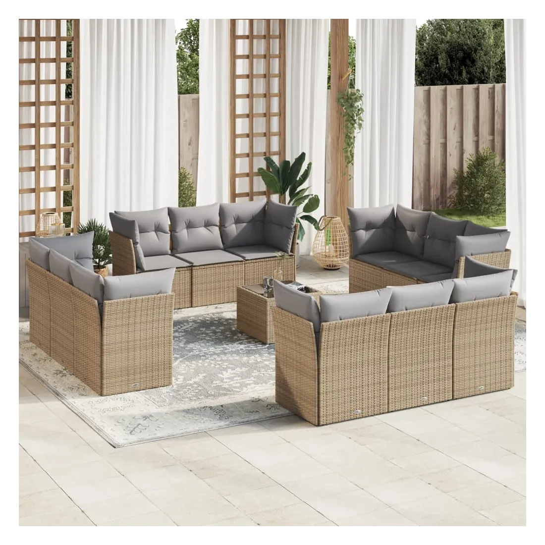 Cet ensemble de canapés de jardin est le complément parfait de votre arrière-cour, terrasse ou patio, offrant un espace confortable et accueillant pour discuter avec la famille et les amis ou simplement se détendre et profiter de l'extérieur. Matériau durable : la résine tressée, également connue sous le nom de poly rotin, est un matériau synthétique solide et nécessitant peu d'entretien qui ressemble au rotin naturel. Il est léger, facile à nettoyer et couramment utilisé pour les meubles d'extérieur en raison de sa durabilité et de ses propriétés de résistance aux intempéries.Expérience d'assise confortable : cet ensemble de meubles d'extérieur, doté de coussins épais, offre une expérience d'assise confortable.Housse amovible et lavable : ces coussins de siège sont dotés de housses amovibles pour un lavage et un entretien faciles.Dessus en verre : le dessus de la table d'extérieur est fabriqué en verre trempé solide et durable, ce qui le rend facile à nettoyer avec un chiffon humide et ajoute une touche d'élégance à votre espace extérieur.Conception modulaire : cet ensemble de meubles d'extérieur a une conception modulaire, ce qui le rend complètement flexible et facile à déplacer, afin que vous puissiez créer un agencement de meubles d'extérieur personnalisé. Bon à savoir :Pour que vos meubles d'extérieur restent beaux, nous vous recommandons de les protéger avec une housse imperméable.