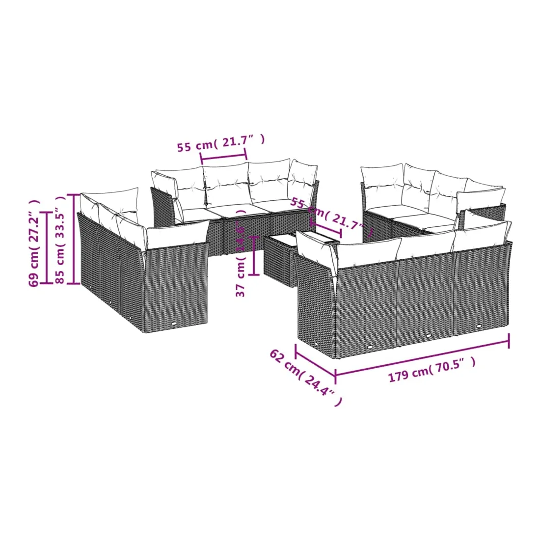 - 12 x coussin de siège avec housse amovible et lavable