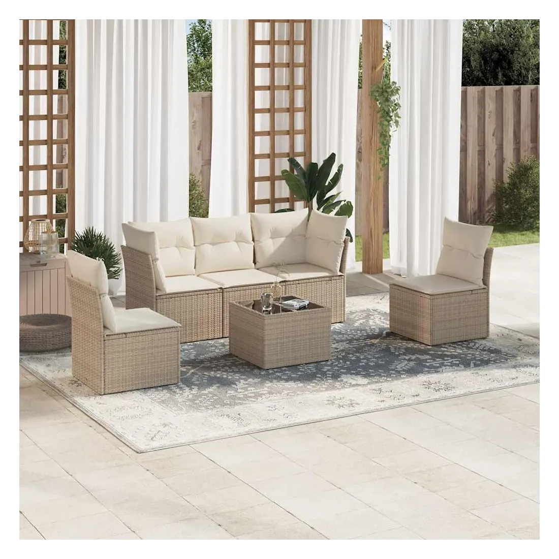 Cet ensemble de canapés de jardin est le complément parfait de votre arrière-cour, terrasse ou patio, offrant un espace confortable et accueillant pour discuter avec la famille et les amis ou simplement se détendre et profiter de l'extérieur. Matériau durable : la résine tressée, également connue sous le nom de poly rotin, est un matériau synthétique solide et nécessitant peu d'entretien qui ressemble au rotin naturel. Il est léger, facile à nettoyer et couramment utilisé pour les meubles d'extérieur en raison de sa durabilité et de ses propriétés de résistance aux intempéries.Expérience d'assise confortable : cet ensemble de meubles d'extérieur, doté de coussins épais, offre une expérience d'assise confortable.Housse amovible et lavable : ces coussins de siège sont dotés de housses amovibles pour un lavage et un entretien faciles.Dessus en verre : le dessus de la table d'extérieur est fabriqué en verre trempé solide et durable, ce qui le rend facile à nettoyer avec un chiffon humide et ajoute une touche d'élégance à votre espace extérieur.Conception modulaire : cet ensemble de meubles d'extérieur a une conception modulaire, ce qui le rend complètement flexible et facile à déplacer, afin que vous puissiez créer un agencement de meubles d'extérieur personnalisé. Bon à savoir :Pour que vos meubles d'extérieur restent beaux, nous vous recommandons de les protéger avec une housse imperméable.