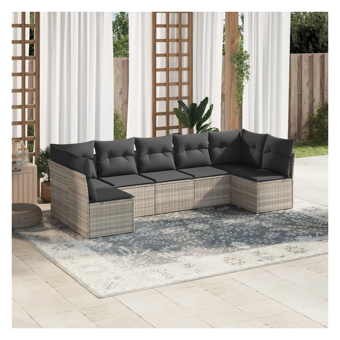 Cet ensemble de canapés de jardin est le complément parfait de votre arrière-cour, terrasse ou patio, offrant un espace confortable et accueillant pour discuter avec la famille et les amis ou simplement se détendre et profiter de l'extérieur. Matériau durable : la résine tressée, également connue sous le nom de poly rotin, est un matériau synthétique solide et nécessitant peu d'entretien qui ressemble au rotin naturel. Il est léger, facile à nettoyer et couramment utilisé pour les meubles d'extérieur en raison de sa durabilité et de ses propriétés de résistance aux intempéries.Expérience d'assise confortable : cet ensemble de meubles d'extérieur, doté de coussins épais, offre une expérience d'assise confortable.Housse amovible et lavable : ces coussins de siège sont dotés de housses amovibles pour un lavage et un entretien faciles.Conception modulaire : cet ensemble de meubles d'extérieur a une conception modulaire, ce qui le rend complètement flexible et facile à déplacer, afin que vous puissiez créer un agencement de meubles d'extérieur personnalisé. Bon à savoir :Pour que vos meubles d'extérieur restent beaux, nous vous recommandons de les protéger avec une housse imperméable.