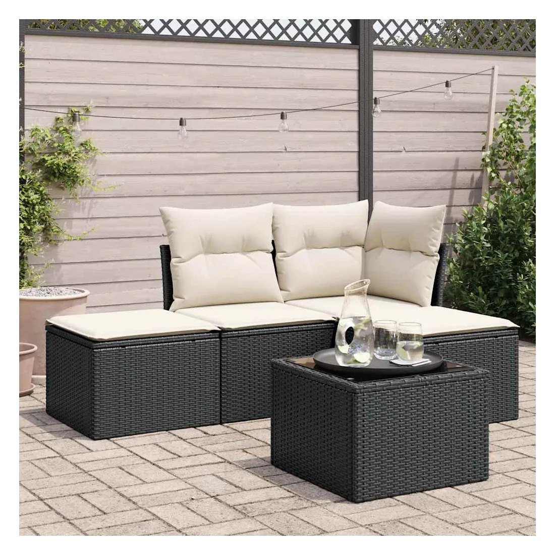 Cet ensemble de canapés de jardin est le complément parfait de votre arrière-cour, terrasse ou patio, offrant un espace confortable et accueillant pour discuter avec la famille et les amis ou simplement se détendre et profiter de l'extérieur. Matériau durable : la résine tressée, également connue sous le nom de poly rotin, est un matériau synthétique solide et nécessitant peu d'entretien qui ressemble au rotin naturel. Il est léger, facile à nettoyer et couramment utilisé pour les meubles d'extérieur en raison de sa durabilité et de ses propriétés de résistance aux intempéries.Expérience d'assise confortable : cet ensemble de meubles d'extérieur, doté de coussins épais, offre une expérience d'assise confortable.Housse amovible et lavable : ces coussins de siège sont dotés de housses amovibles pour un lavage et un entretien faciles.Dessus en verre : le dessus de la table d'extérieur est fabriqué en verre trempé solide et durable, ce qui le rend facile à nettoyer avec un chiffon humide et ajoute une touche d'élégance à votre espace extérieur.Conception modulaire : cet ensemble de meubles d'extérieur a une conception modulaire, ce qui le rend complètement flexible et facile à déplacer, afin que vous puissiez créer un agencement de meubles d'extérieur personnalisé. Bon à savoir :Pour que vos meubles d'extérieur restent beaux, nous vous recommandons de les protéger avec une housse imperméable.