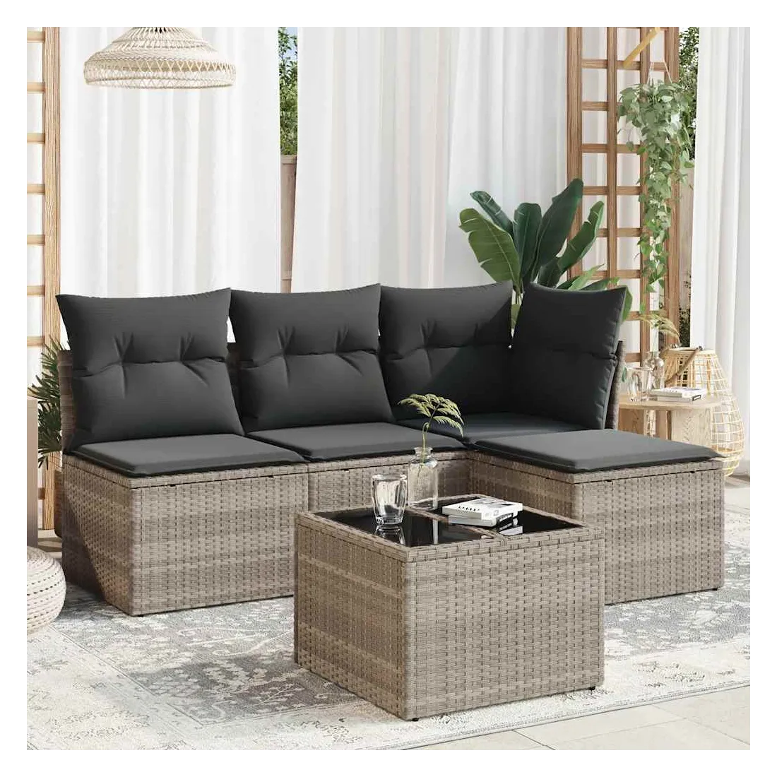 Cet ensemble de canapés de jardin est le complément parfait de votre arrière-cour, terrasse ou patio, offrant un espace confortable et accueillant pour discuter avec la famille et les amis ou simplement se détendre et profiter de l'extérieur. Matériau durable : la résine tressée, également connue sous le nom de poly rotin, est un matériau synthétique solide et nécessitant peu d'entretien qui ressemble au rotin naturel. Il est léger, facile à nettoyer et couramment utilisé pour les meubles d'extérieur en raison de sa durabilité et de ses propriétés de résistance aux intempéries.Expérience d'assise confortable : cet ensemble de meubles d'extérieur, doté de coussins épais, offre une expérience d'assise confortable.Housse amovible et lavable : ces coussins de siège sont dotés de housses amovibles pour un lavage et un entretien faciles.Dessus en verre : le dessus de la table d'extérieur est fabriqué en verre trempé solide et durable, ce qui le rend facile à nettoyer avec un chiffon humide et ajoute une touche d'élégance à votre espace extérieur.Conception modulaire : cet ensemble de meubles d'extérieur a une conception modulaire, ce qui le rend complètement flexible et facile à déplacer, afin que vous puissiez créer un agencement de meubles d'extérieur personnalisé. Bon à savoir :Pour que vos meubles d'extérieur restent beaux, nous vous recommandons de les protéger avec une housse imperméable.