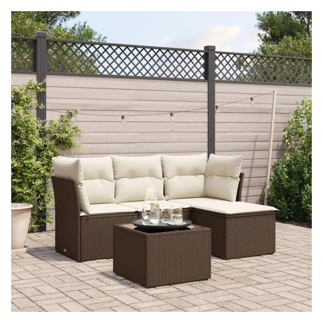 Cet ensemble de canapés de jardin est le complément parfait de votre arrière-cour, terrasse ou patio, offrant un espace confortable et accueillant pour discuter avec la famille et les amis ou simplement se détendre et profiter de l'extérieur. Matériau durable : la résine tressée, également connue sous le nom de poly rotin, est un matériau synthétique solide et nécessitant peu d'entretien qui ressemble au rotin naturel. Il est léger, facile à nettoyer et couramment utilisé pour les meubles d'extérieur en raison de sa durabilité et de ses propriétés de résistance aux intempéries.Expérience d'assise confortable : cet ensemble de meubles d'extérieur, doté de coussins épais, offre une expérience d'assise confortable.Housse amovible et lavable : ces coussins de siège sont dotés de housses amovibles pour un lavage et un entretien faciles.Dessus en verre : le dessus de la table d'extérieur est fabriqué en verre trempé solide et durable, ce qui le rend facile à nettoyer avec un chiffon humide et ajoute une touche d'élégance à votre espace extérieur.Conception modulaire : cet ensemble de meubles d'extérieur a une conception modulaire, ce qui le rend complètement flexible et facile à déplacer, afin que vous puissiez créer un agencement de meubles d'extérieur personnalisé. Bon à savoir :Pour que vos meubles d'extérieur restent beaux, nous vous recommandons de les protéger avec une housse imperméable.