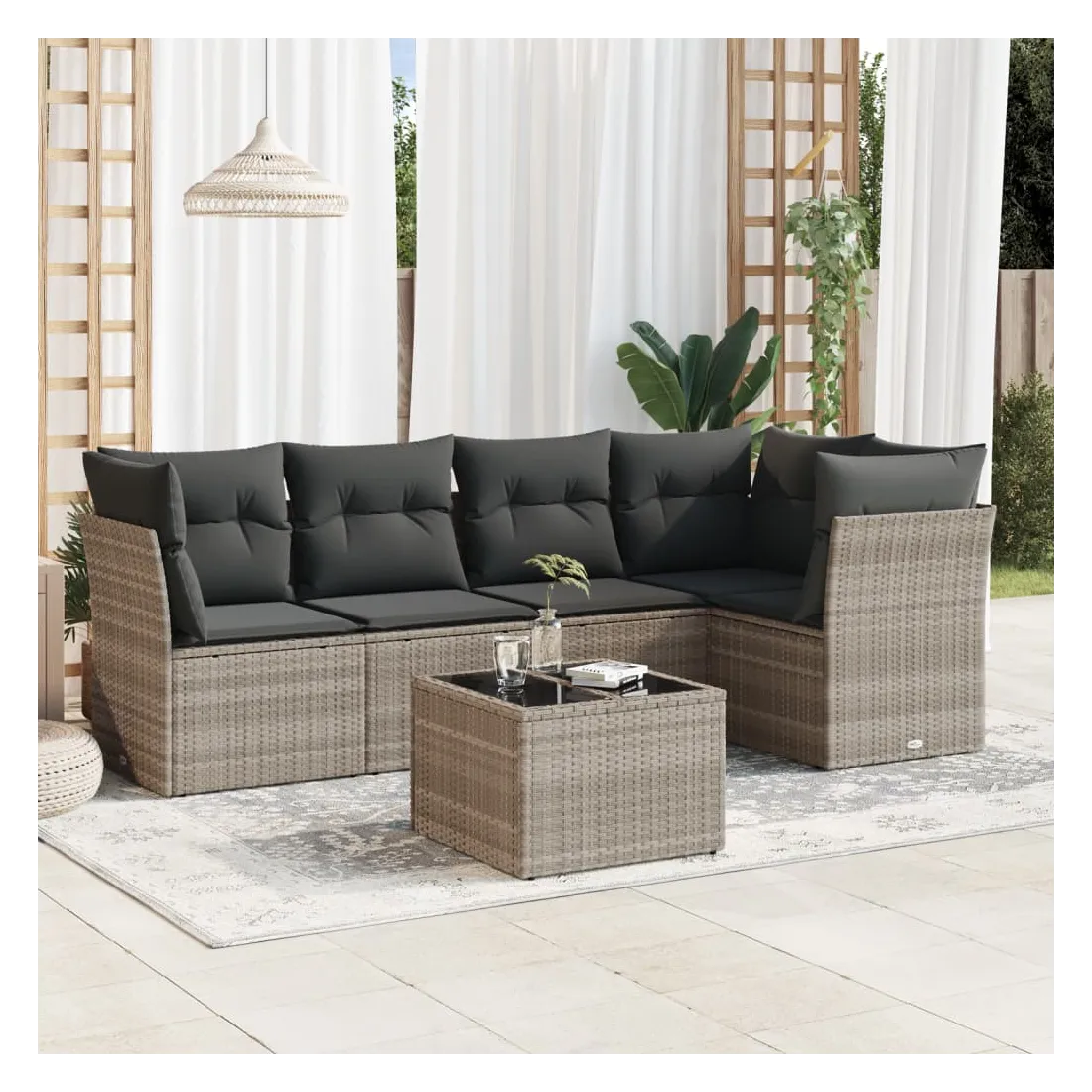 Cet ensemble de canapés de jardin est le complément parfait de votre arrière-cour, terrasse ou patio, offrant un espace confortable et accueillant pour discuter avec la famille et les amis ou simplement se détendre et profiter de l'extérieur. Matériau durable : la résine tressée, également connue sous le nom de poly rotin, est un matériau synthétique solide et nécessitant peu d'entretien qui ressemble au rotin naturel. Il est léger, facile à nettoyer et couramment utilisé pour les meubles d'extérieur en raison de sa durabilité et de ses propriétés de résistance aux intempéries.Expérience d'assise confortable : cet ensemble de meubles d'extérieur, doté de coussins épais, offre une expérience d'assise confortable.Housse amovible et lavable : ces coussins de siège sont dotés de housses amovibles pour un lavage et un entretien faciles.Dessus en verre : le dessus de la table d'extérieur est fabriqué en verre trempé solide et durable, ce qui le rend facile à nettoyer avec un chiffon humide et ajoute une touche d'élégance à votre espace extérieur.Conception modulaire : cet ensemble de meubles d'extérieur a une conception modulaire, ce qui le rend complètement flexible et facile à déplacer, afin que vous puissiez créer un agencement de meubles d'extérieur personnalisé. Bon à savoir :Pour que vos meubles d'extérieur restent beaux, nous vous recommandons de les protéger avec une housse imperméable.