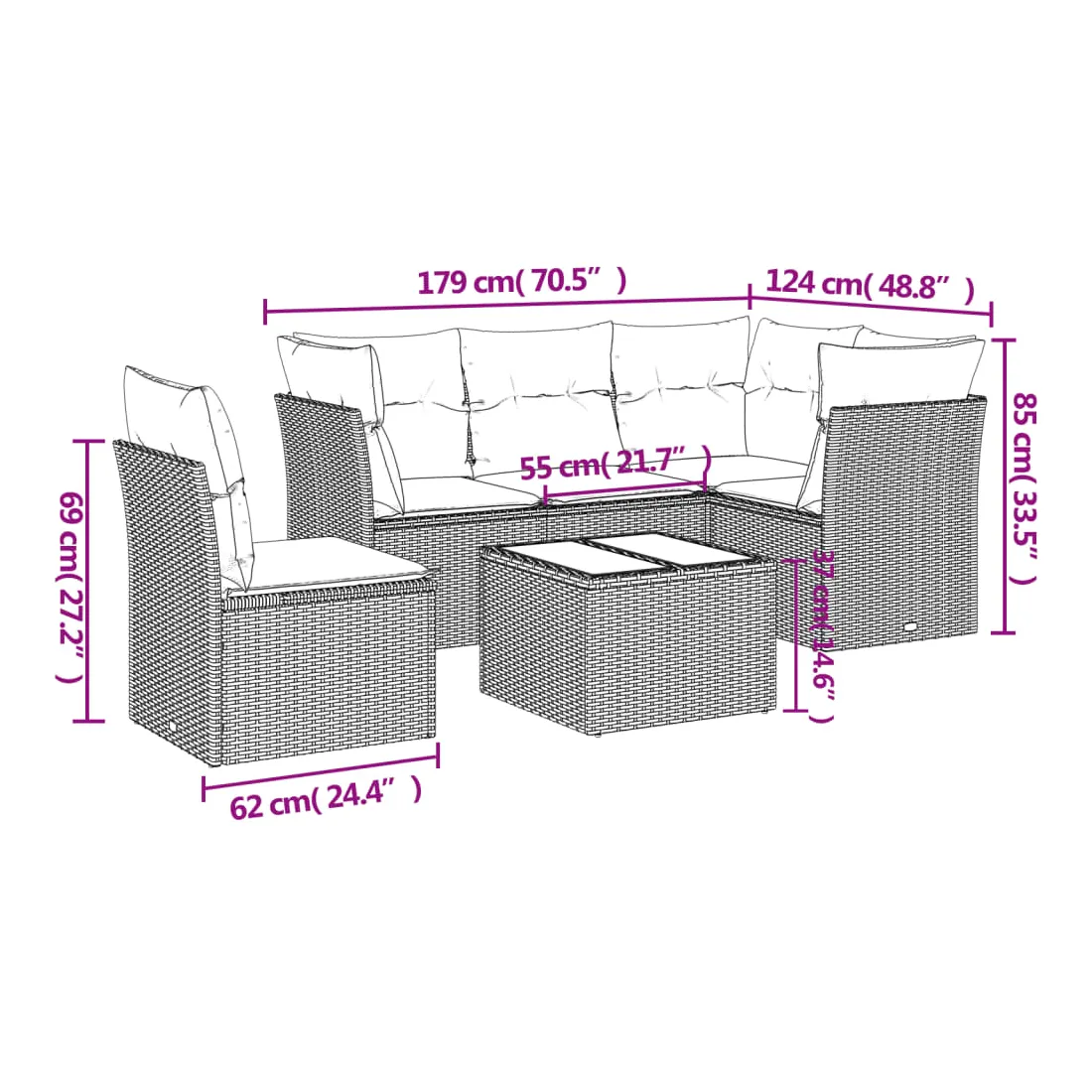 - Dimensions : 55 x 55 x 37 cm (l x P x H)