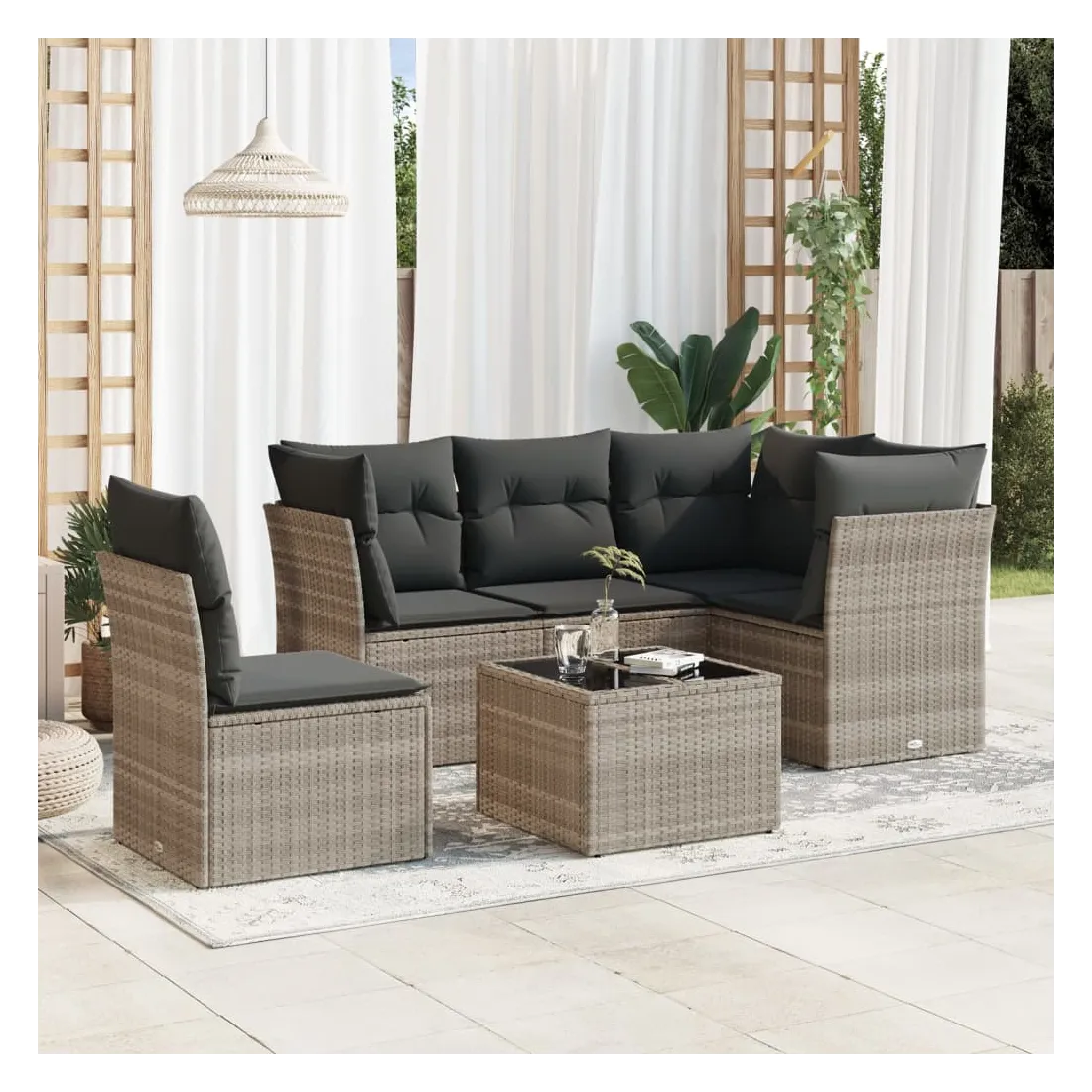 Cet ensemble de canapés de jardin est le complément parfait de votre arrière-cour, terrasse ou patio, offrant un espace confortable et accueillant pour discuter avec la famille et les amis ou simplement se détendre et profiter de l'extérieur. Matériau durable : la résine tressée, également connue sous le nom de poly rotin, est un matériau synthétique solide et nécessitant peu d'entretien qui ressemble au rotin naturel. Il est léger, facile à nettoyer et couramment utilisé pour les meubles d'extérieur en raison de sa durabilité et de ses propriétés de résistance aux intempéries.Expérience d'assise confortable : cet ensemble de meubles d'extérieur, doté de coussins épais, offre une expérience d'assise confortable.Housse amovible et lavable : ces coussins de siège sont dotés de housses amovibles pour un lavage et un entretien faciles.Dessus en verre : le dessus de la table d'extérieur est fabriqué en verre trempé solide et durable, ce qui le rend facile à nettoyer avec un chiffon humide et ajoute une touche d'élégance à votre espace extérieur.Conception modulaire : cet ensemble de meubles d'extérieur a une conception modulaire, ce qui le rend complètement flexible et facile à déplacer, afin que vous puissiez créer un agencement de meubles d'extérieur personnalisé. Bon à savoir :Pour que vos meubles d'extérieur restent beaux, nous vous recommandons de les protéger avec une housse imperméable.
