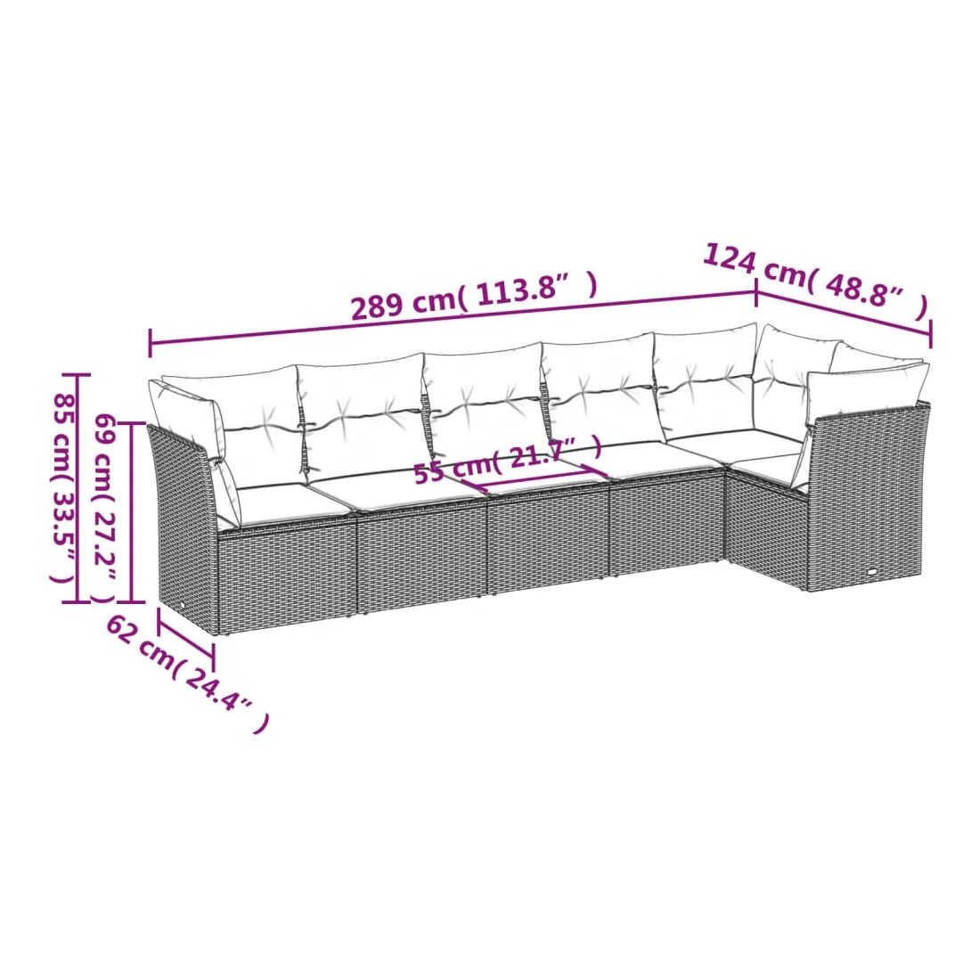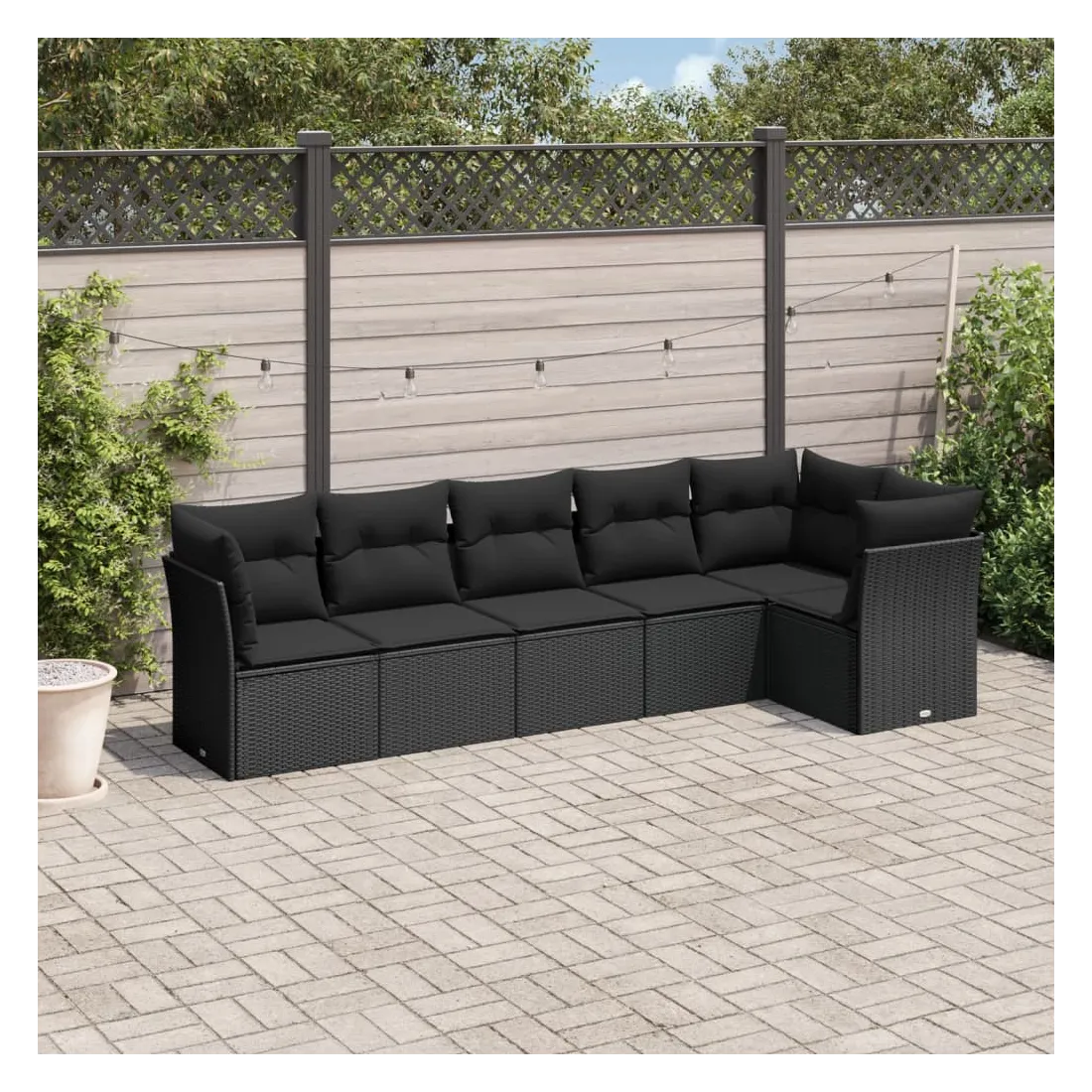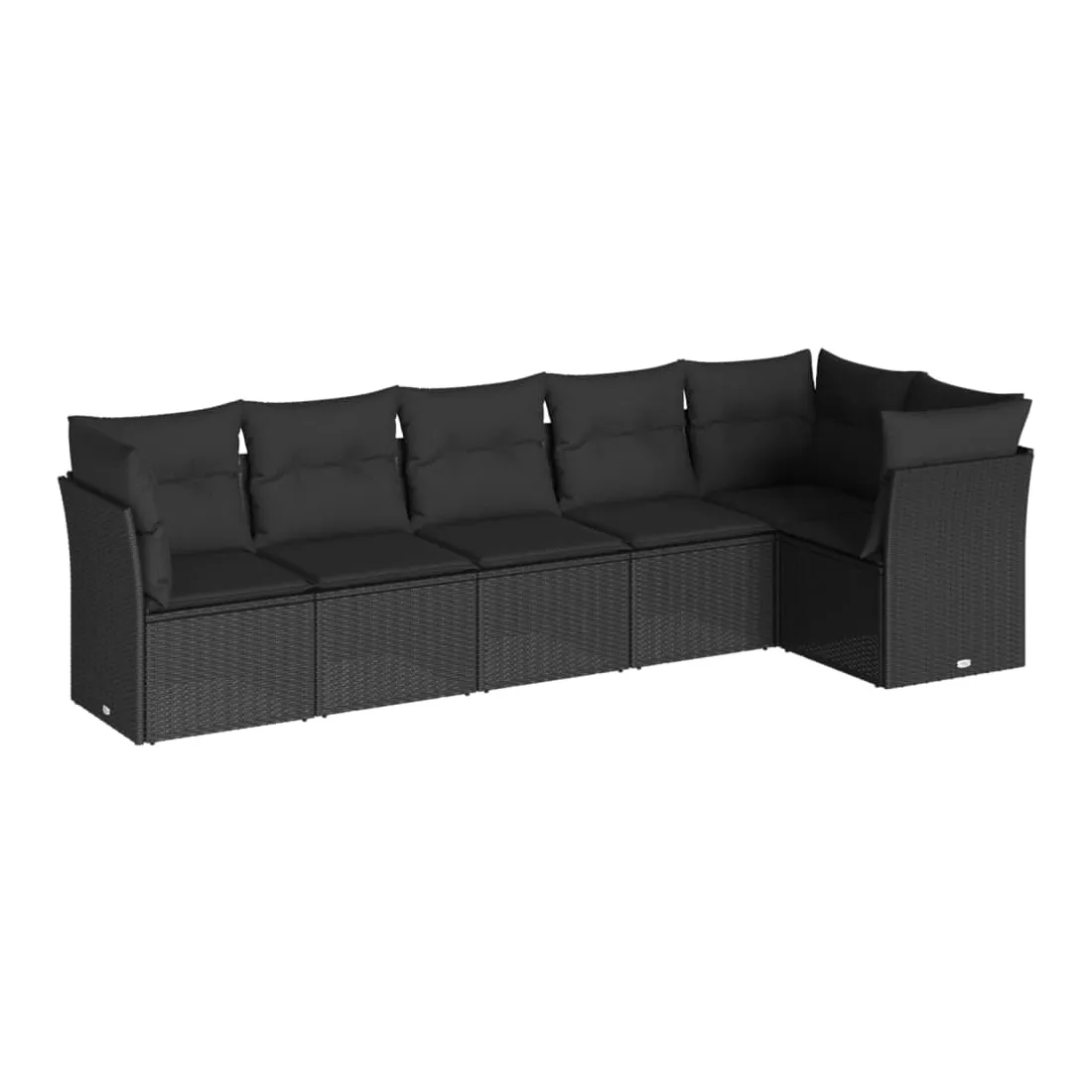 Salon de jardin 6 pcs avec coussins noir résine tressée
