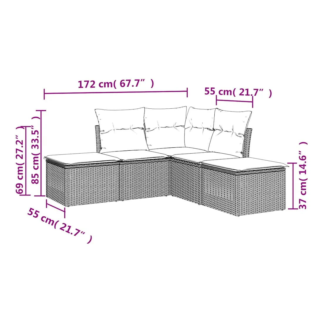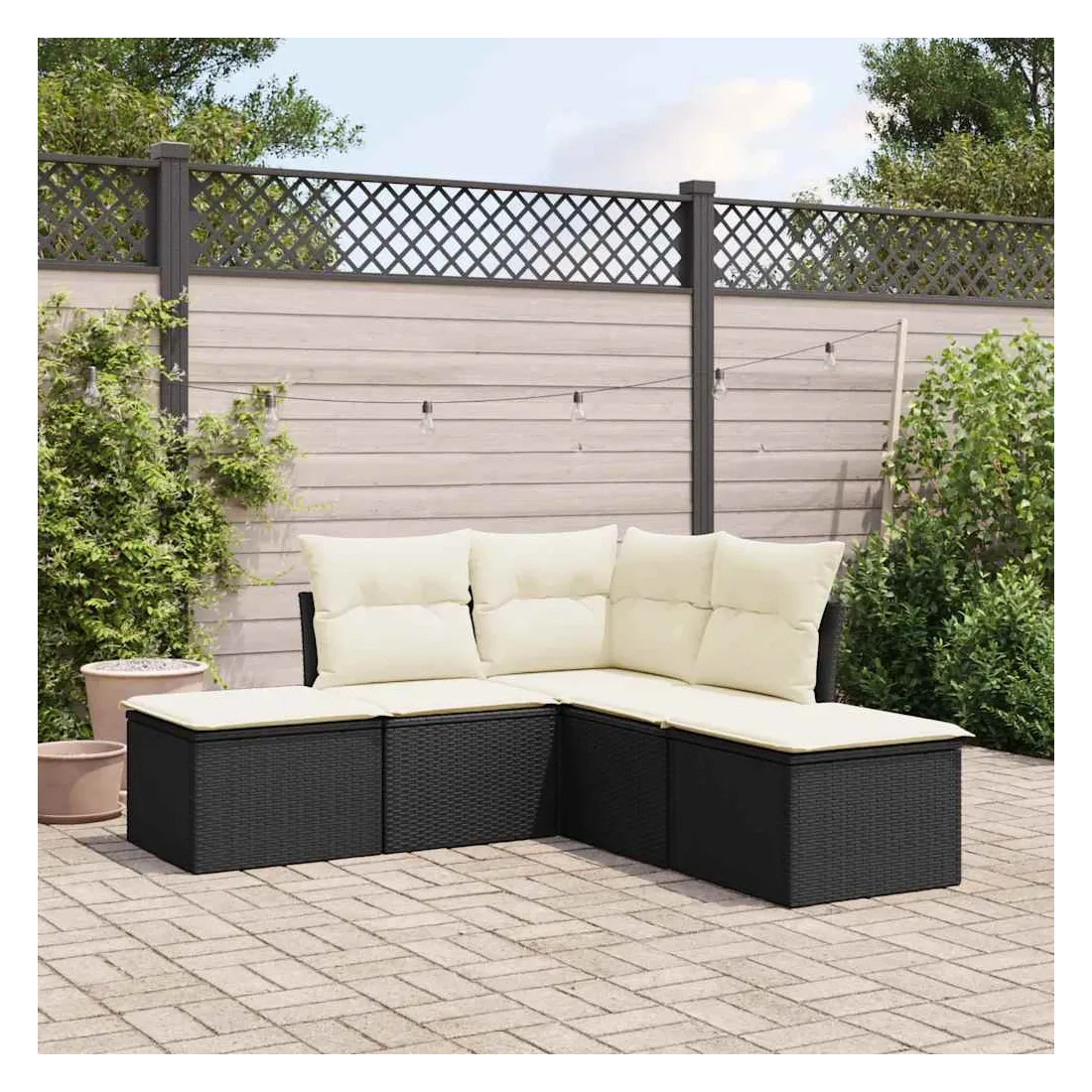 Cet ensemble de canapés de jardin est le complément parfait de votre arrière-cour, terrasse ou patio, offrant un espace confortable et accueillant pour discuter avec la famille et les amis ou simplement se détendre et profiter de l'extérieur. Matériau durable : la résine tressée, également connue sous le nom de poly rotin, est un matériau synthétique solide et nécessitant peu d'entretien qui ressemble au rotin naturel. Il est léger, facile à nettoyer et couramment utilisé pour les meubles d'extérieur en raison de sa durabilité et de ses propriétés de résistance aux intempéries.Expérience d'assise confortable : ce mobilier d'extérieur, doté de coussins épais, offre une expérience d'assise confortable.Housse amovible et lavable : ces coussins de siège sont dotés de housses amovibles pour un lavage et un entretien faciles.Conception modulaire : cet ensemble de meubles d'extérieur a une conception modulaire, ce qui le rend complètement flexible et facile à déplacer, afin que vous puissiez créer un agencement de meubles d'extérieur personnalisé. Bon à savoir :Pour que vos meubles d'extérieur restent beaux, nous vous recommandons de les protéger avec une housse imperméable.