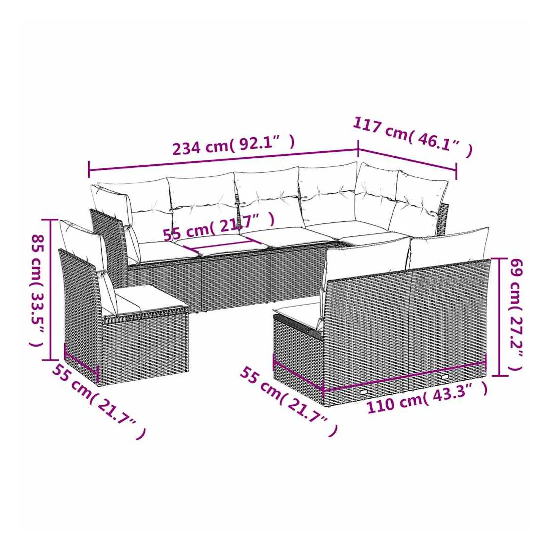 Cet ensemble de canapés de jardin est le complément parfait de votre arrière-cour, terrasse ou patio, offrant un espace confortable et accueillant pour discuter avec la famille et les amis ou simplement se détendre et profiter de l'extérieur. Matériau durable : la résine tressée, également connue sous le nom de poly rotin, est un matériau synthétique solide et nécessitant peu d'entretien qui ressemble au rotin naturel. Il est léger, facile à nettoyer et couramment utilisé pour les meubles d'extérieur en raison de sa durabilité et de ses propriétés de résistance aux intempéries.Expérience d'assise confortable : ce mobilier d'extérieur, doté de coussins épais, offre une expérience d'assise confortable.Housse amovible et lavable : ces coussins de siège sont dotés de housses amovibles pour un lavage et un entretien faciles.Conception modulaire : cet ensemble de meubles d'extérieur a une conception modulaire, ce qui le rend complètement flexible et facile à déplacer, afin que vous puissiez créer un agencement de meubles d'extérieur personnalisé. Bon à savoir :Pour que vos meubles d'extérieur restent beaux, nous vous recommandons de les protéger avec une housse imperméable.