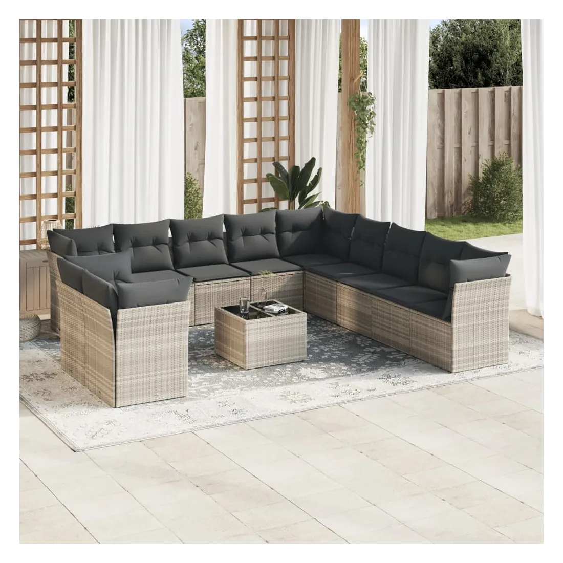 Cet ensemble de canapés de jardin est le complément parfait de votre arrière-cour, terrasse ou patio, offrant un espace confortable et accueillant pour discuter avec la famille et les amis ou simplement se détendre et profiter de l'extérieur. Matériau durable : la résine tressée, également connue sous le nom de poly rotin, est un matériau synthétique solide et nécessitant peu d'entretien qui ressemble au rotin naturel. Il est léger, facile à nettoyer et couramment utilisé pour les meubles d'extérieur en raison de sa durabilité et de ses propriétés de résistance aux intempéries.Expérience d'assise confortable : ce mobilier d'extérieur, doté de coussins épais, offre une expérience d'assise confortable.Dessus en verre : le dessus de la table d'extérieur est fabriqué en verre trempé solide et durable, ce qui le rend facile à nettoyer avec un chiffon humide et ajoute une touche d'élégance à votre espace extérieur.Housse amovible et lavable : ces coussins de siège sont dotés de housses amovibles pour un lavage et un entretien faciles.Conception modulaire : cet ensemble de meubles d'extérieur a une conception modulaire, ce qui le rend complètement flexible et facile à déplacer, afin que vous puissiez créer un agencement de meubles d'extérieur personnalisé. Bon à savoir :Pour que vos meubles d'extérieur restent beaux, nous vous recommandons de les protéger avec une housse imperméable.