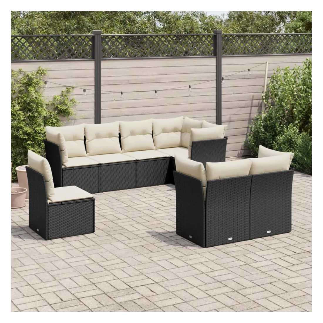 Salon de jardin 8 pcs avec coussins noir résine tressée
